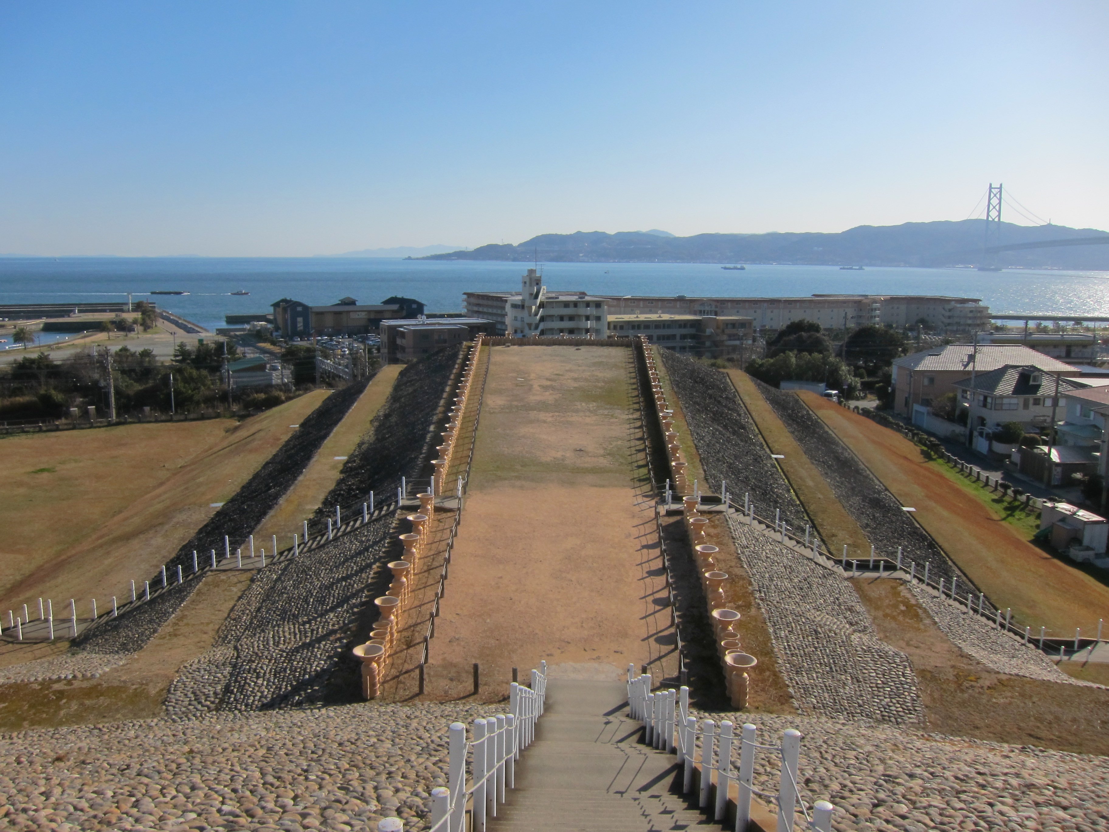 五色塚古墳は5年ほど前に行ったけど、なかなかいいとこでしたよー 古墳が再現されてるのもいいし、景色がめっちゃいいんですよねー ハニワと橋のコラボ写真が撮れますヾ(。>﹏<。)ノ゙✧*。