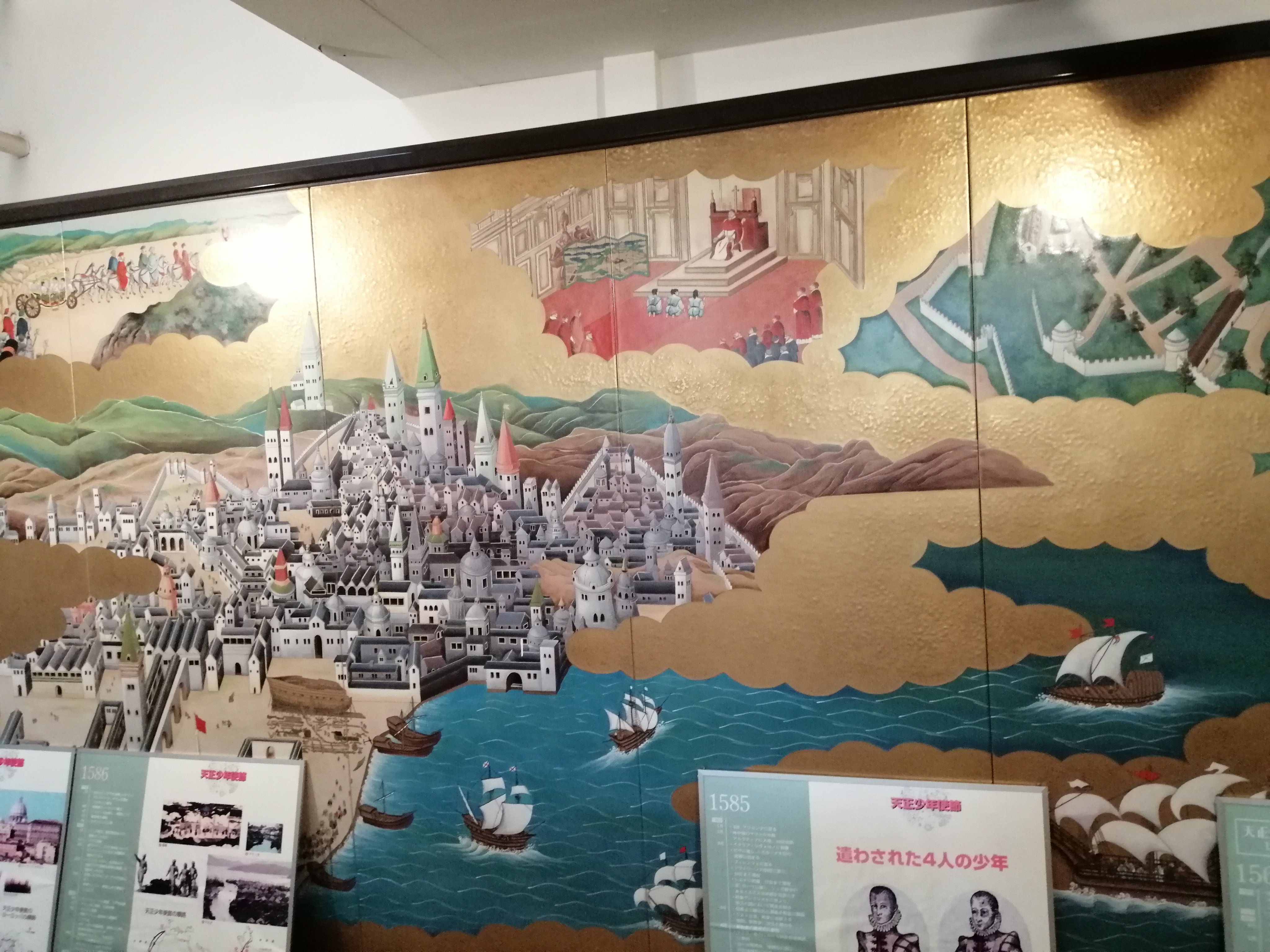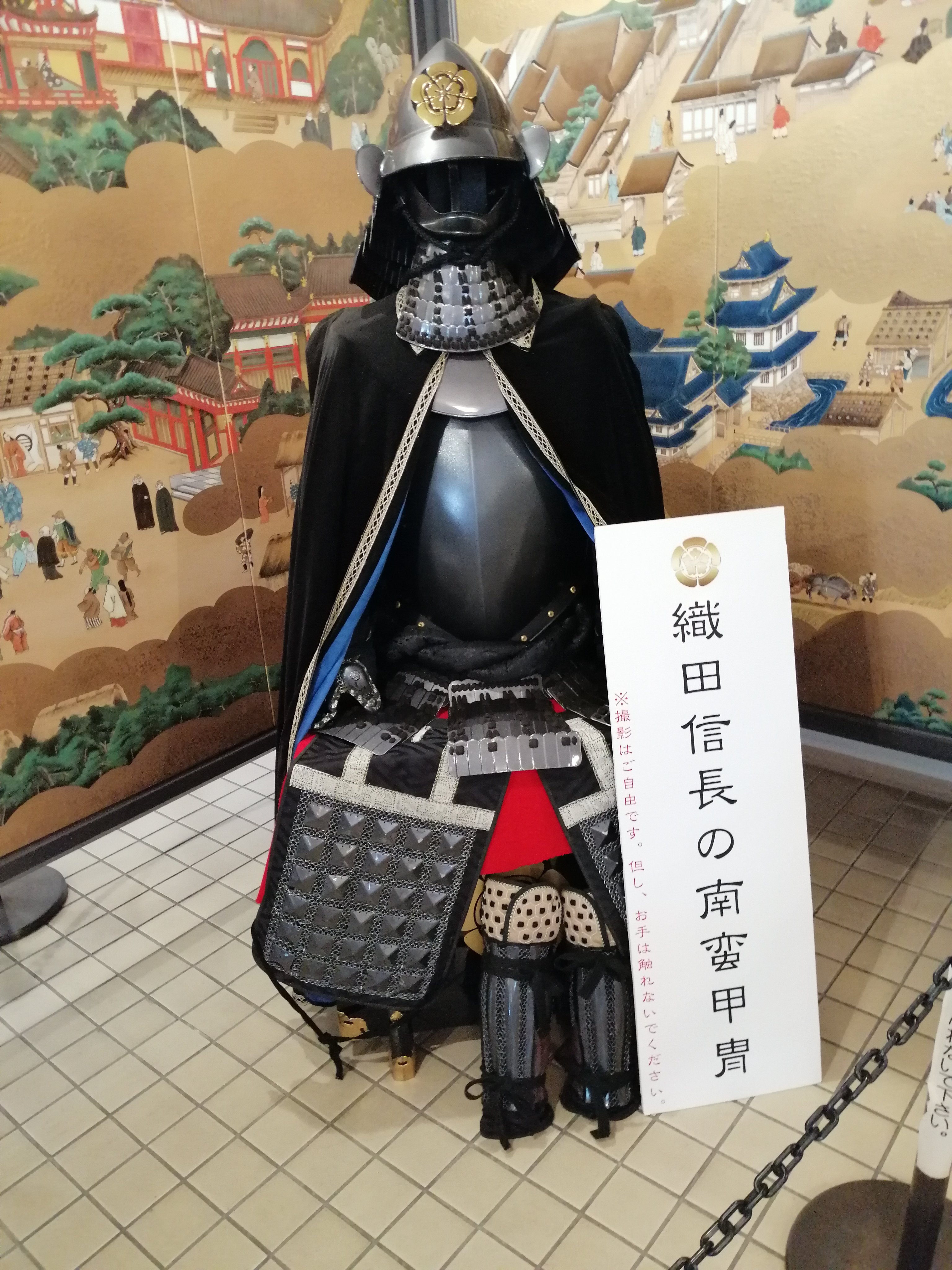 1枚目:信長の甲冑 2枚目:安土城の復元模型は中身がパカッと開いてすっごーい! 3枚目:屏風絵のローマ市街、これは珍しい 4枚目:信長といえば、やっぱり甲冑+マントだよね!