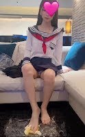 私は、セーラー服、サラサラ地毛ロングで、胸より下まであります。
