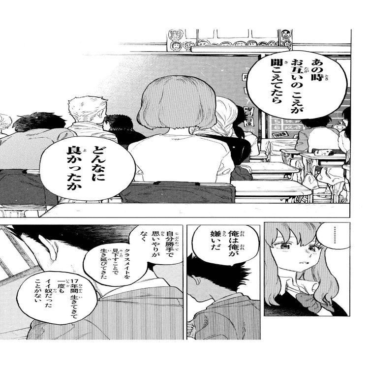 そうでなければ、一見すると睦まじい関係を硝子と結び直せたように見える石田が、その後も深く苦悩し続け、心の中でかつての己を刺し殺すはずがない。