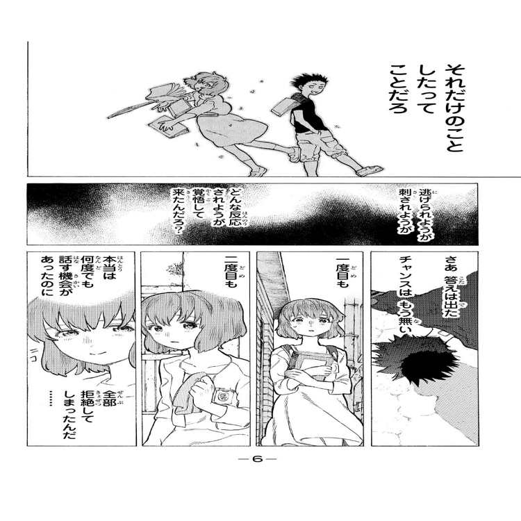 確かに石田は、彼女の心に一つのトドメを刺してしまったのだろう。しかし、全ての原因を彼に押し付けられるほど、事は単純でもない。硝子はその後まもなく転校し、石田たちと距離をとることになるが、それでも彼女の絶望が癒えることはなかった。