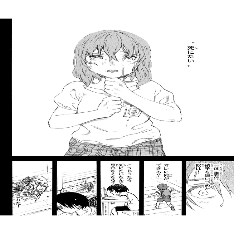 これは後半も後半、6巻に至ってようやく明かされることだが、小学6年生のある日(おそらく、石田によって筆談用のノートを池に投げ捨てられた日)、硝子は妹に向かって「死にたい」と打ち明けている。