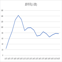 一方、こども虐待による死亡事例等の検証結果等についてというサイトによると、子どもの虐待死は離婚件数のピークから数年遅れてH18年〜19年頃にピークを迎え、以後緩やかに減少し、近年はほぼ横ばいとなっている。