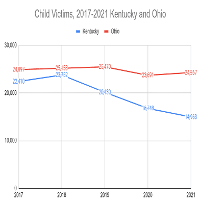 2017年から2021年までの変化率を見ると、オハイオ州では-2.5%、ケンタッキー州では-33.2%とかなりの違いがある。ちなみにこの間、この二つの州で変わったことは平等な養育時間推定の法が定められたことのみと言われている。