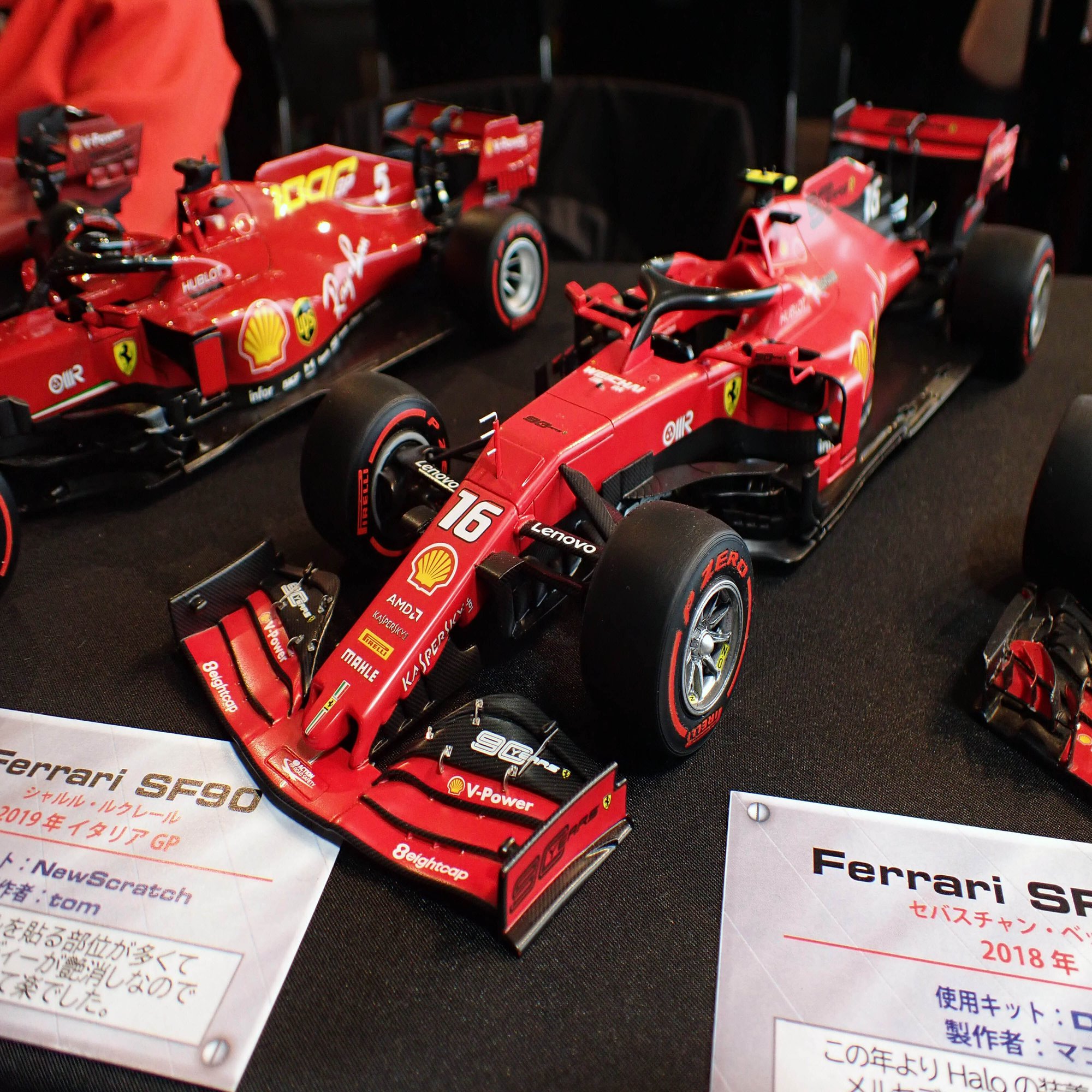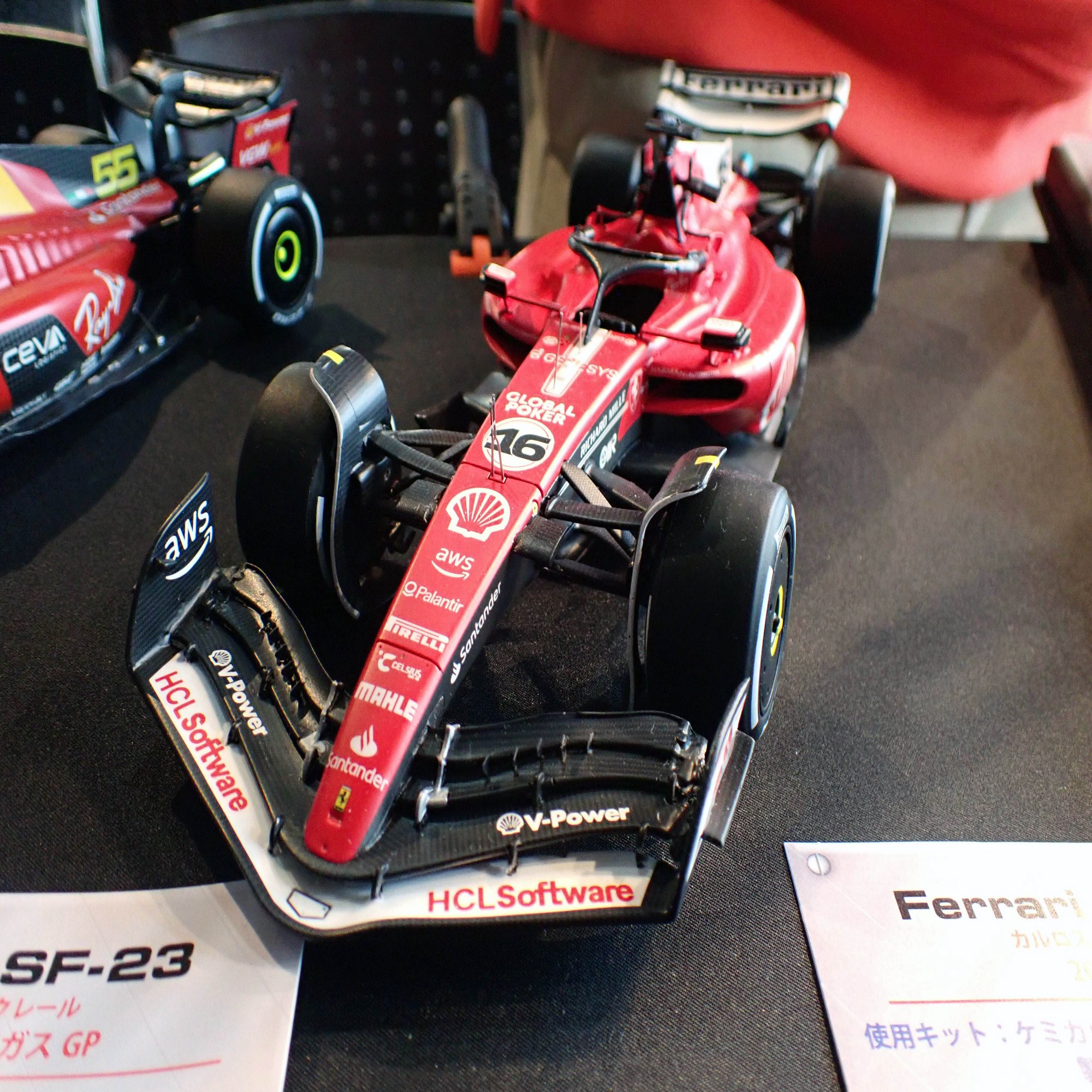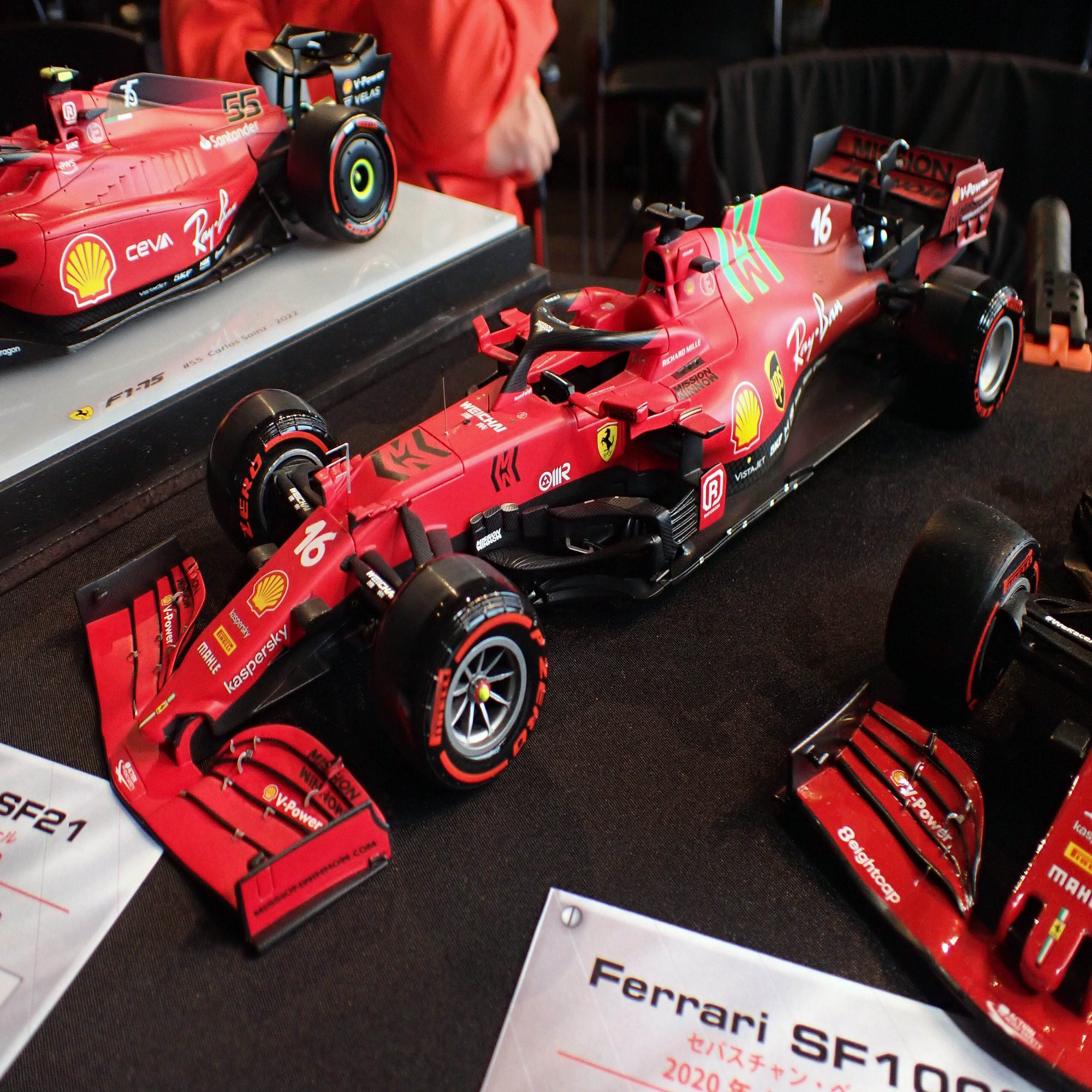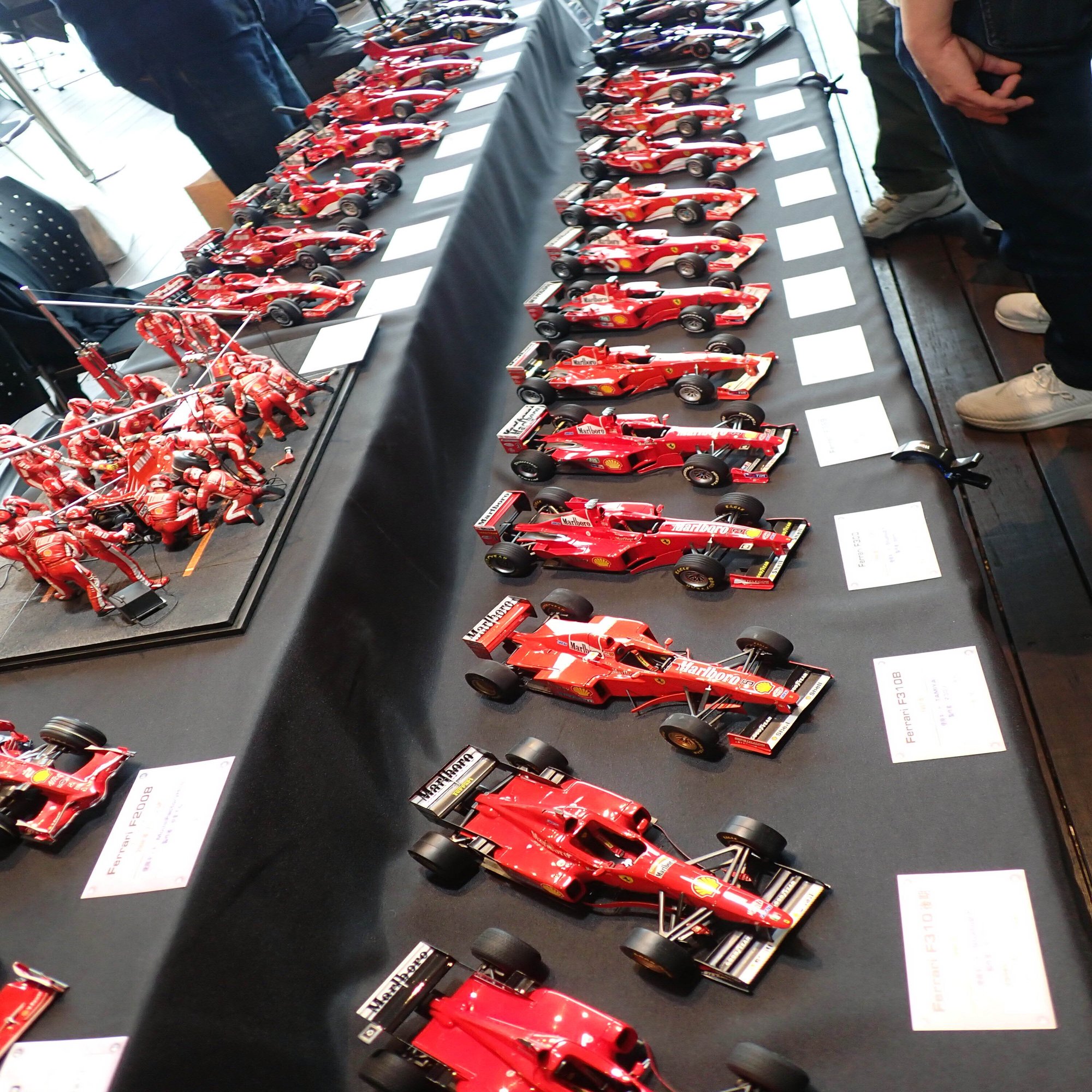 ここからは、1/20スケールのフェラーリF1マシンをご紹介します。歴代のフェラーリマシンがずらりと並んでいましたが、全てをご紹介できないのが残念です。