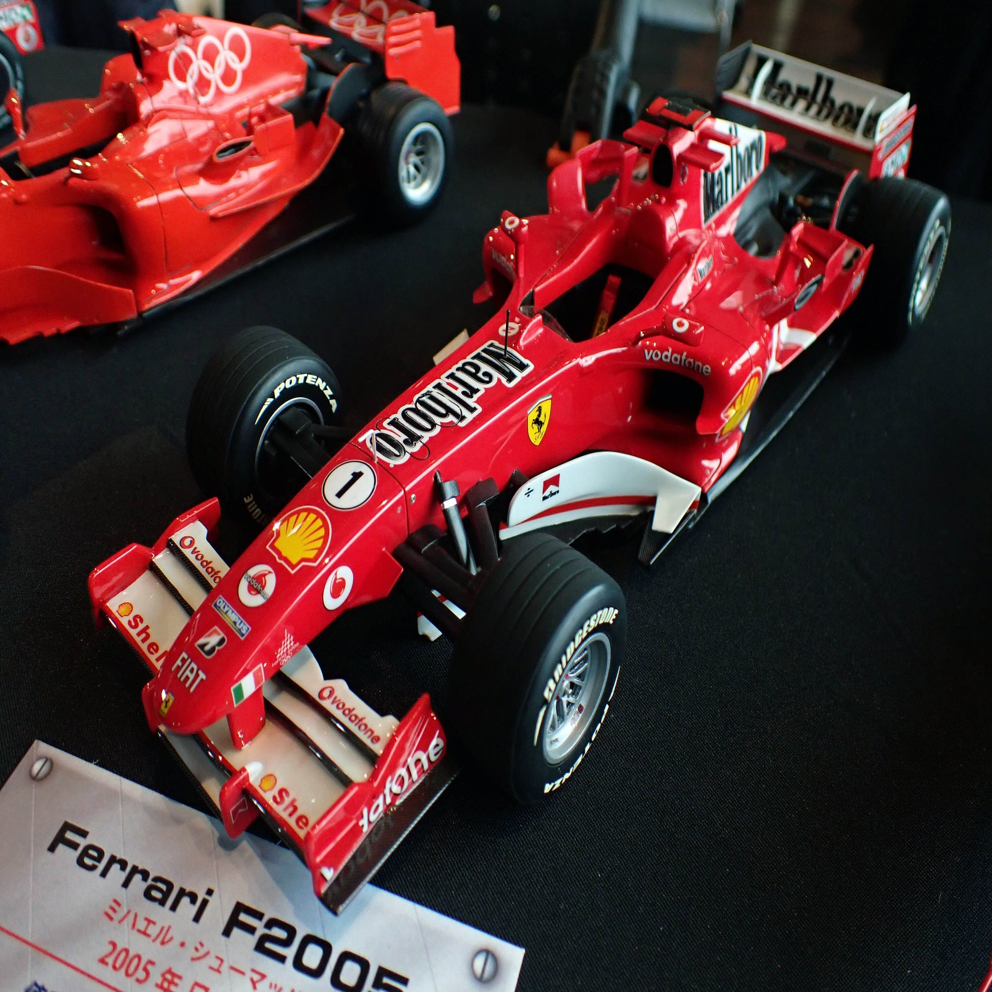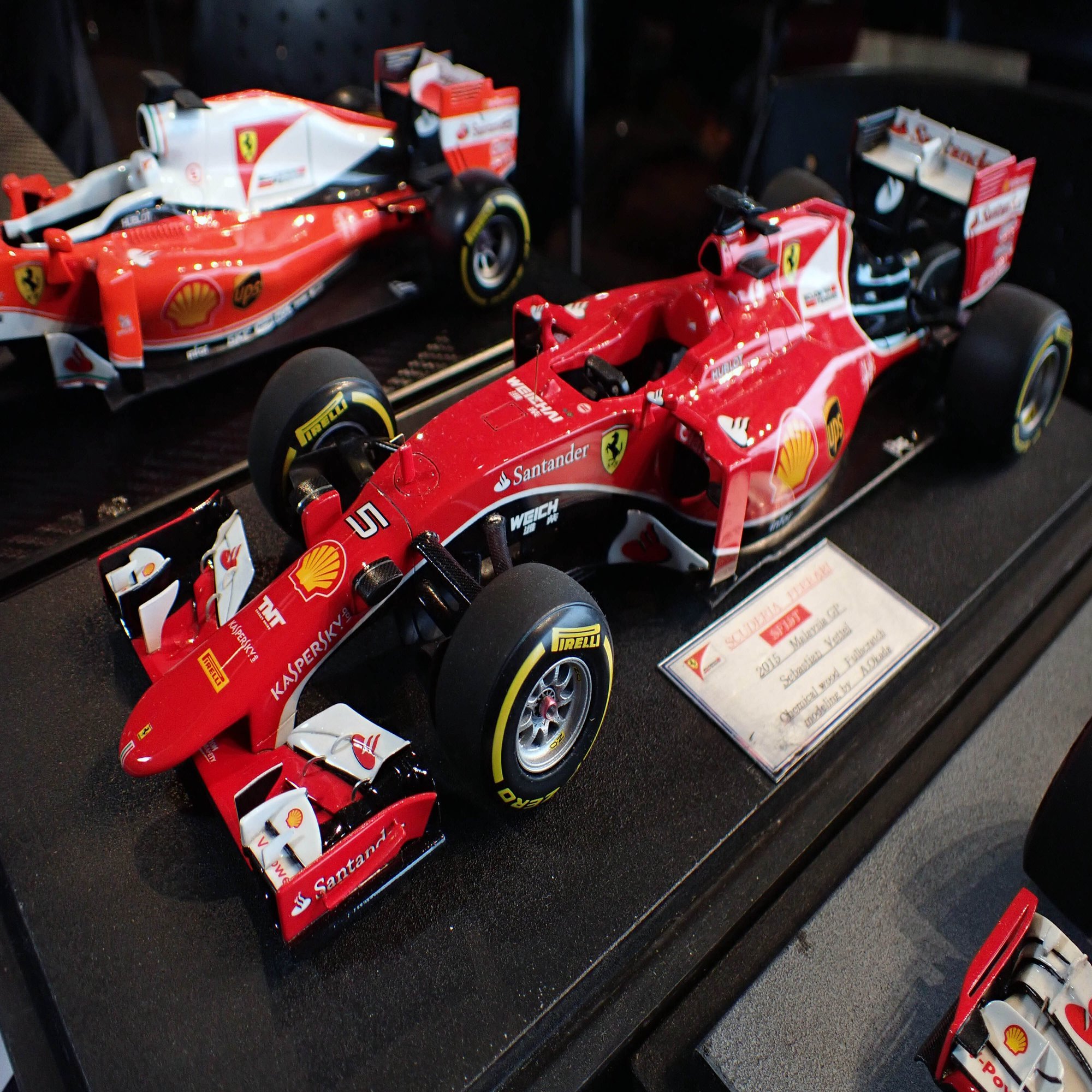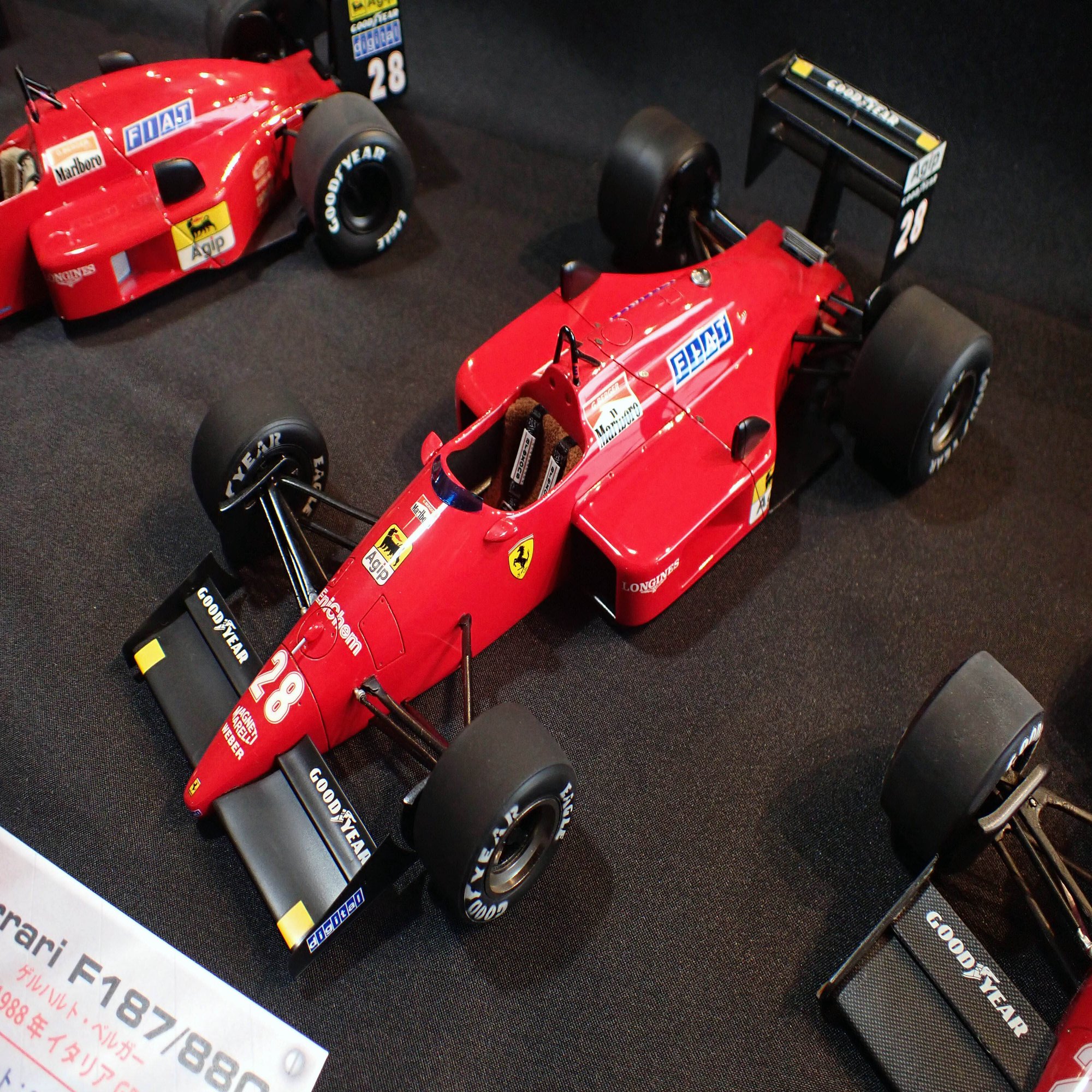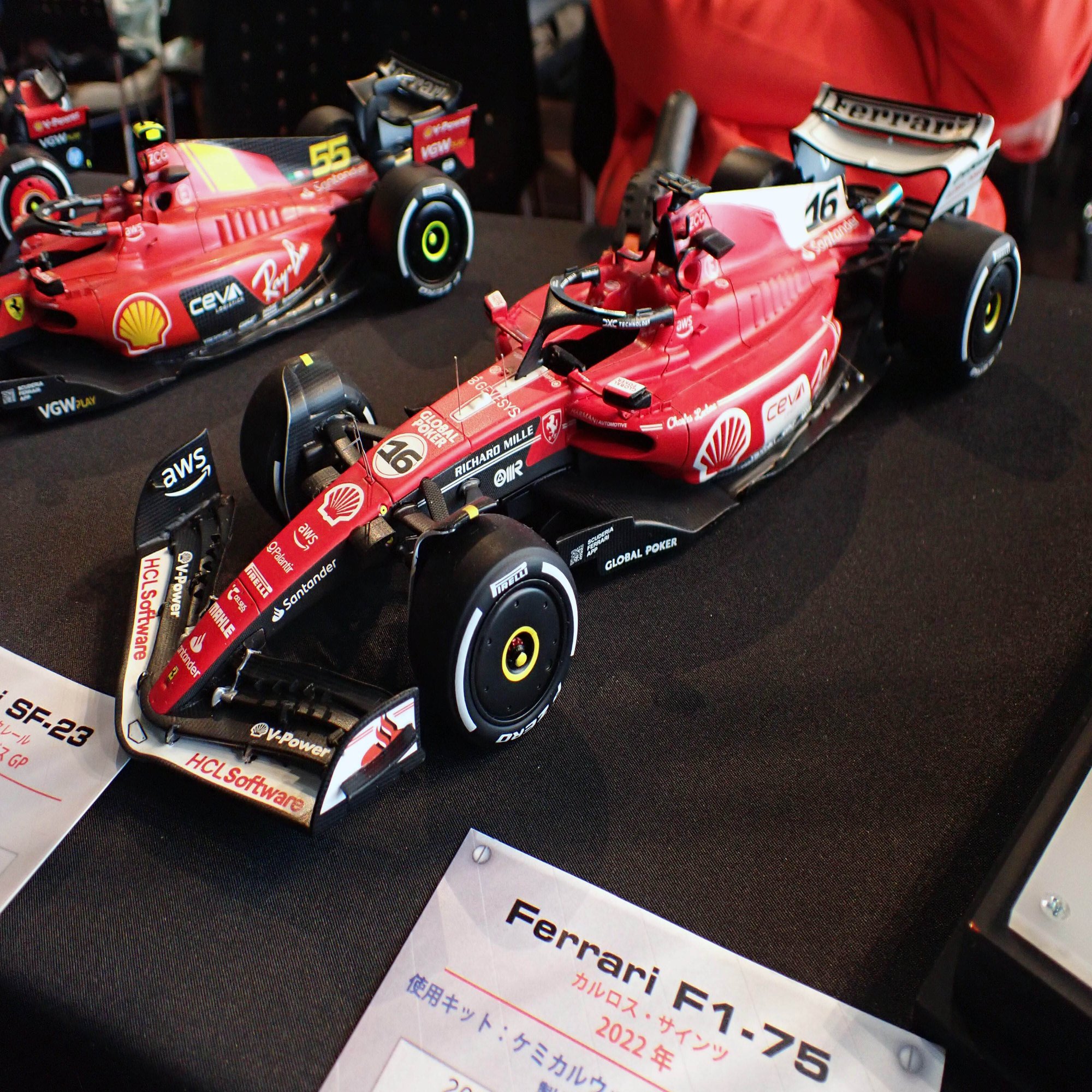 ここからは、1/20スケールのフェラーリF1マシンをご紹介します。歴代のフェラーリマシンがずらりと並んでいましたが、全てをご紹介できないのが残念です。