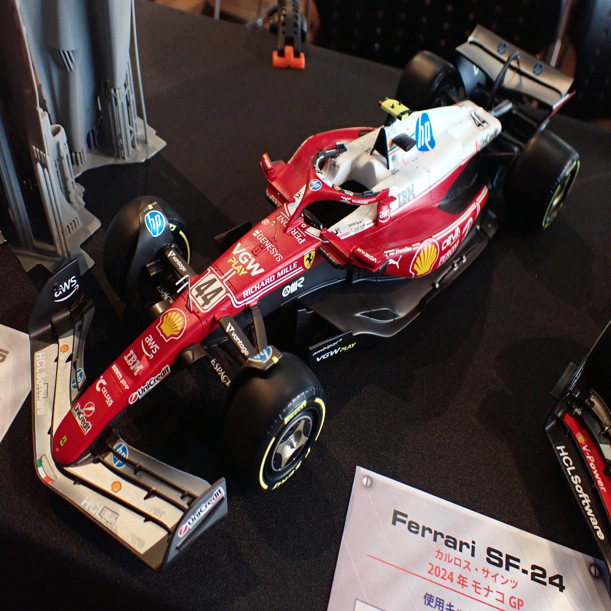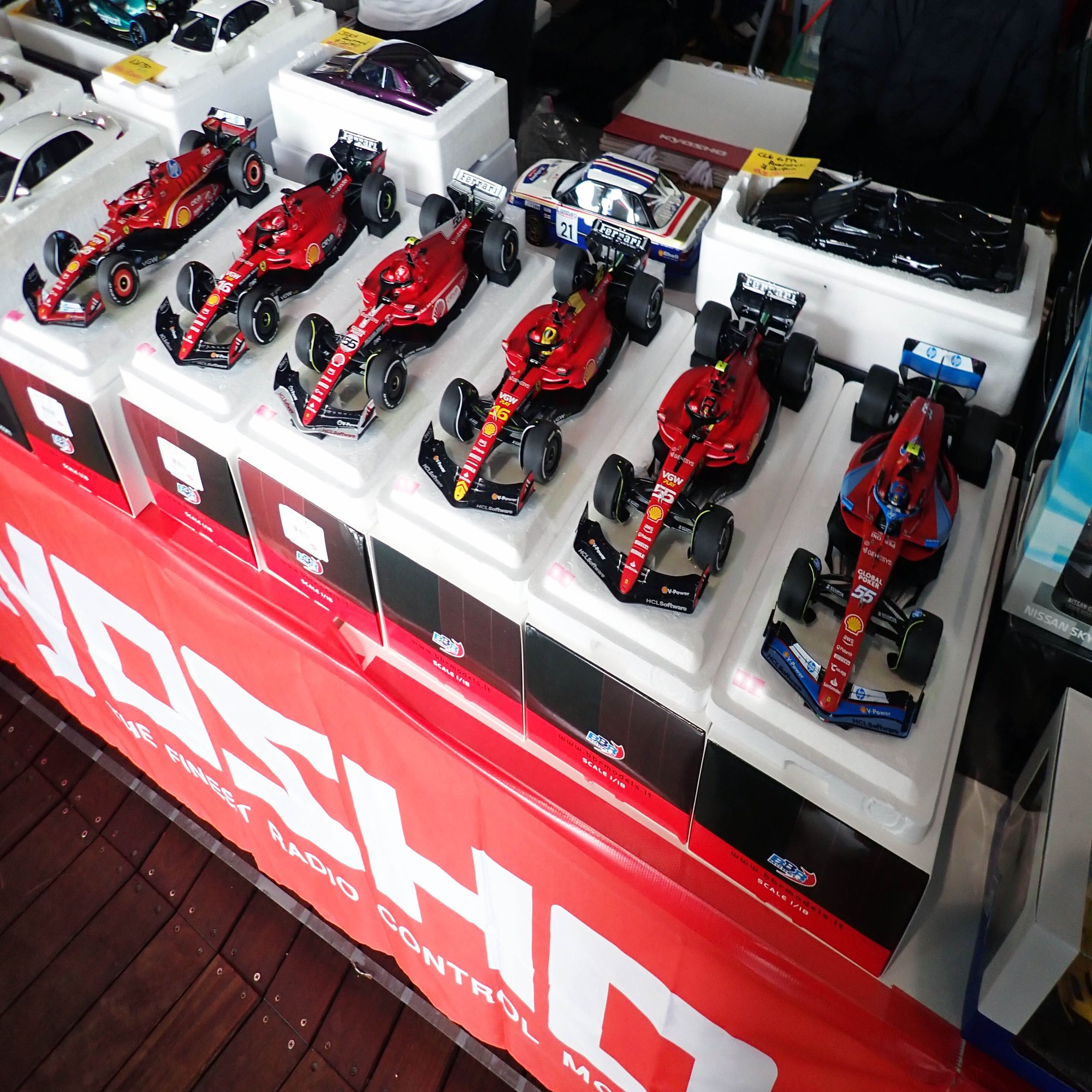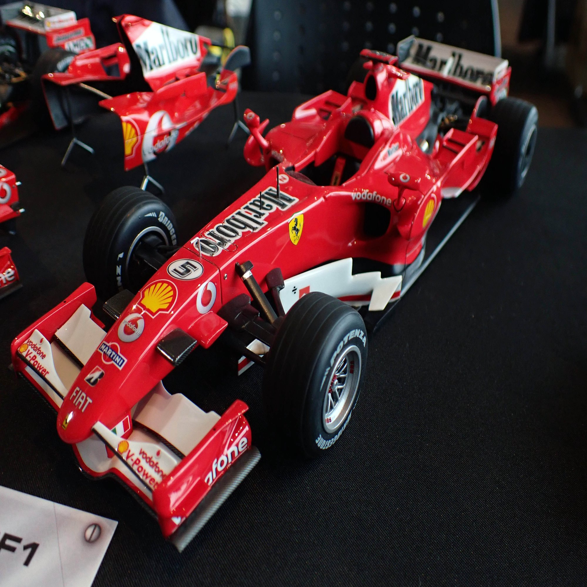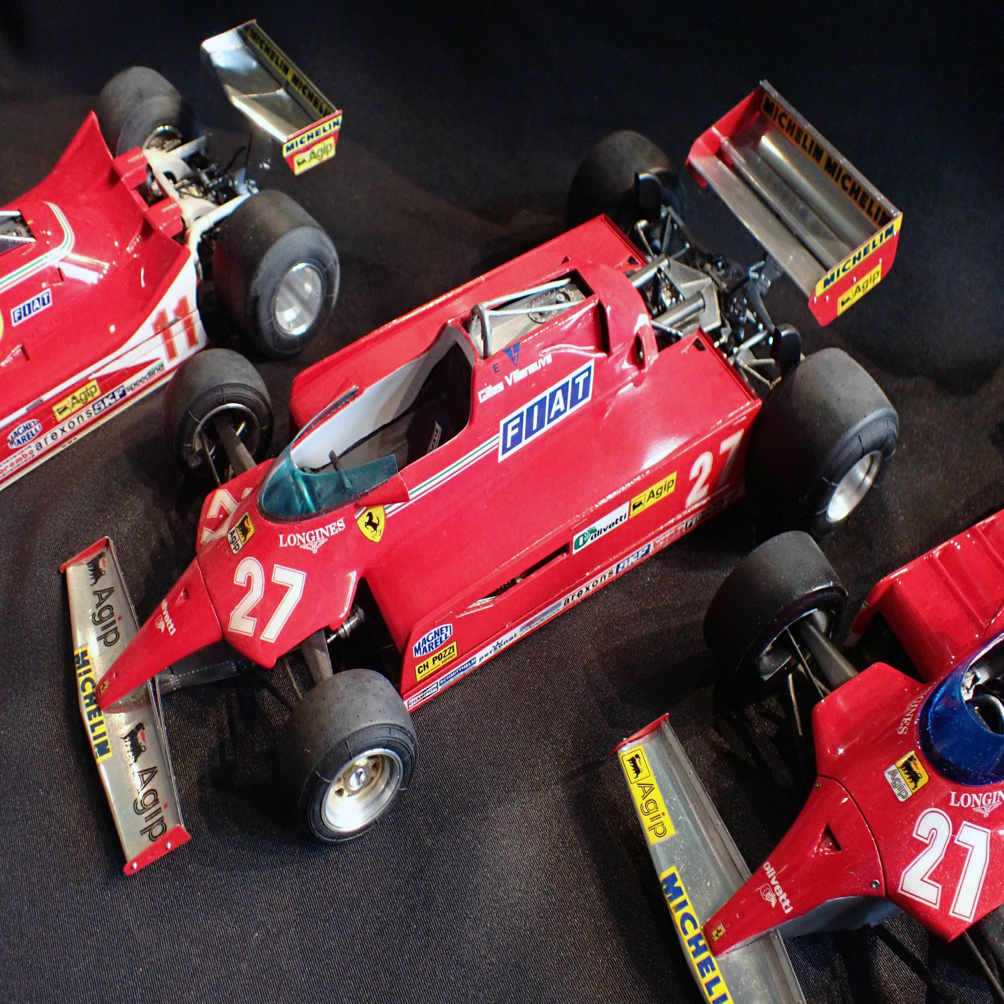 ここからは、1/20スケールのフェラーリF1マシンをご紹介します。歴代のフェラーリマシンがずらりと並んでいましたが、全てをご紹介できないのが残念です。