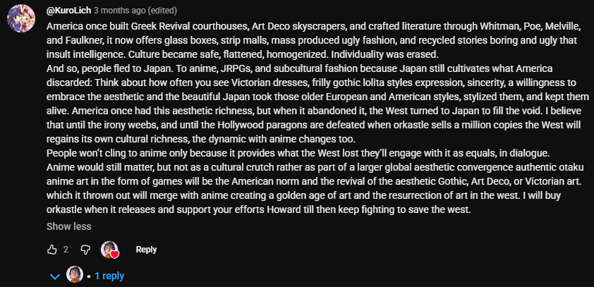 Howard here. Niggas butthurt to see a man flourishing so much in his lane. Orkastle made over 4k wishlists in its first week before even dropping a trailer, which is considered way into top tier according to the Zukowski chart. It's literally going to surpass Toby's dust in sales, so here's your last chance to like it before it was cool.