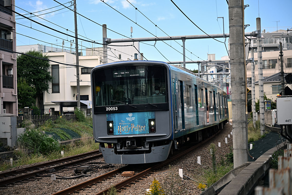 最初にやってきたのは20000系だった.レンズは28-75mm.焦点距離は記録によれば53mm.シャッタースピードは1/400秒,絞りは開放.思わず流し撮りをしてしまったから,周辺の隅々の解像度を厳密に見ることはできないが,左手前のマンションのエアコン室外機や右下のバラストのボケ方から,このレンズの味付けの一端が解るかもしれない.