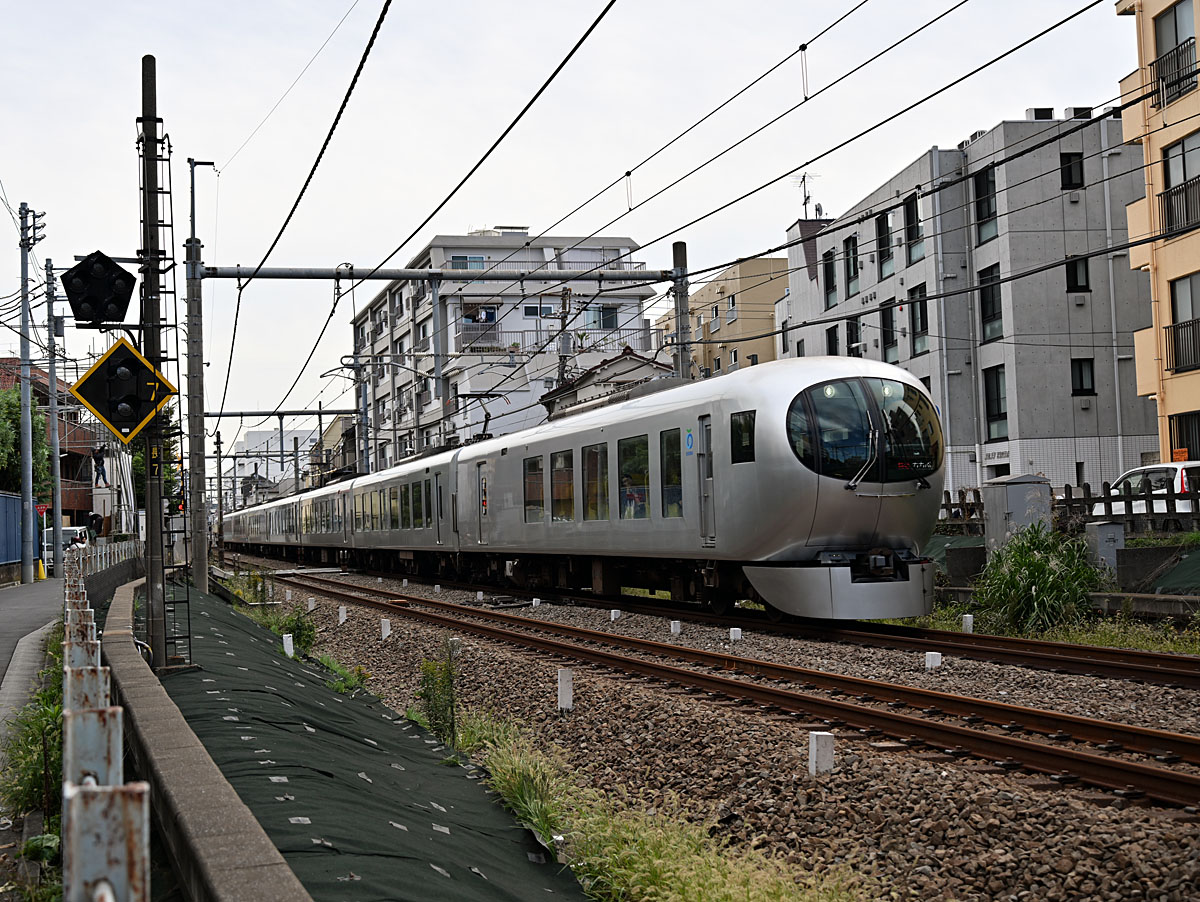 続いては40000系.Laviewとは対照的に,1/125秒でようやくLEDの文字を読むことができる,なかなか手ごわい電車である.この写真は焦点距離180mmでf/8まで絞っている,焦点距離が違うし,ほんの少しだけれど,本能的にカメラを振ってしまっているから,背景のボケ具合は単純比較できないけれど,僕の目には素直な描写のように思える.