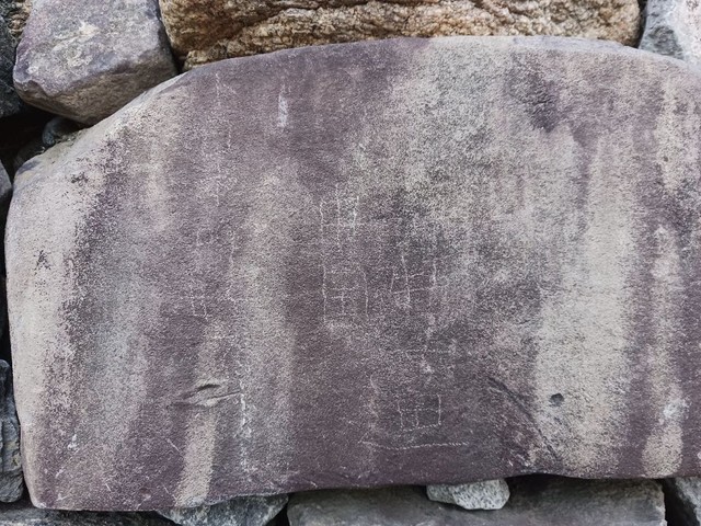 高さ1.5mの位置にある安山岩に、削るようにして「中国」「日本」「好」などの文字が刻まれていました。