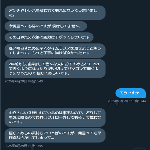 一旦僕も感情的になってるだろうからやり取り止めよう…。
