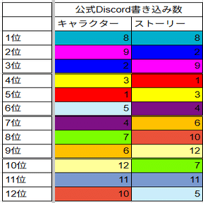 ・公式Discordのキャラクター/ストーリーを語るスレの書き込み数