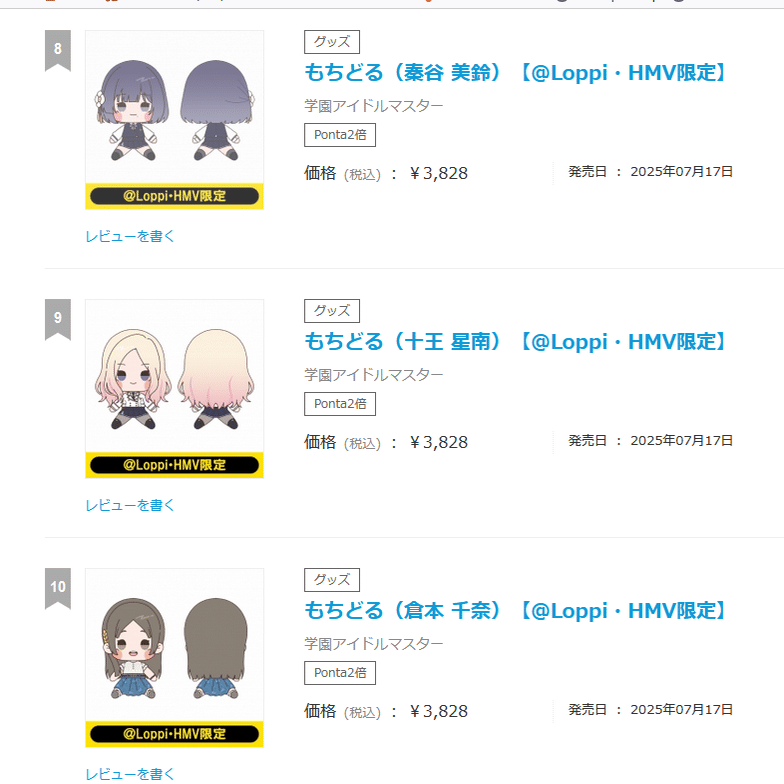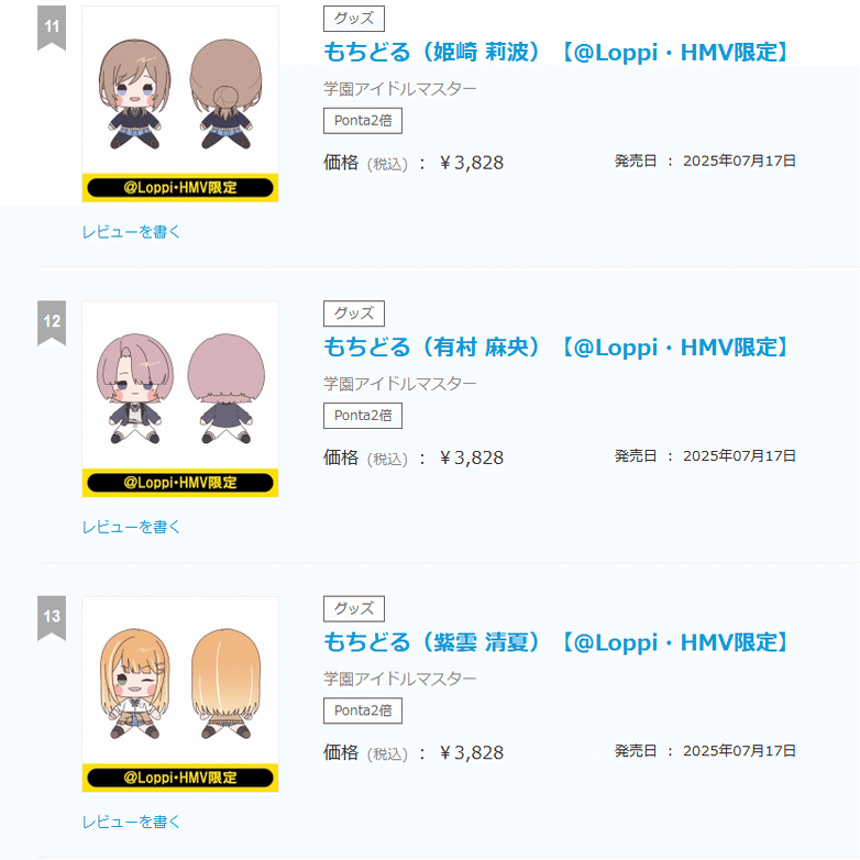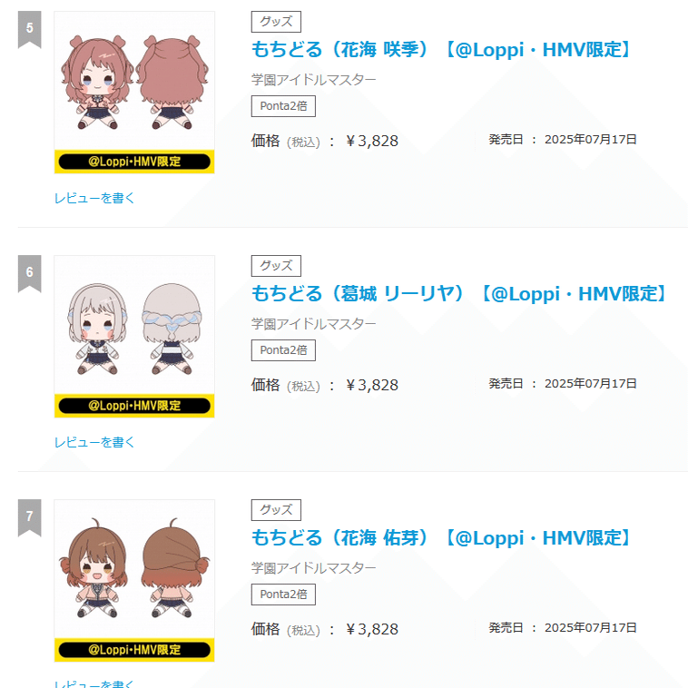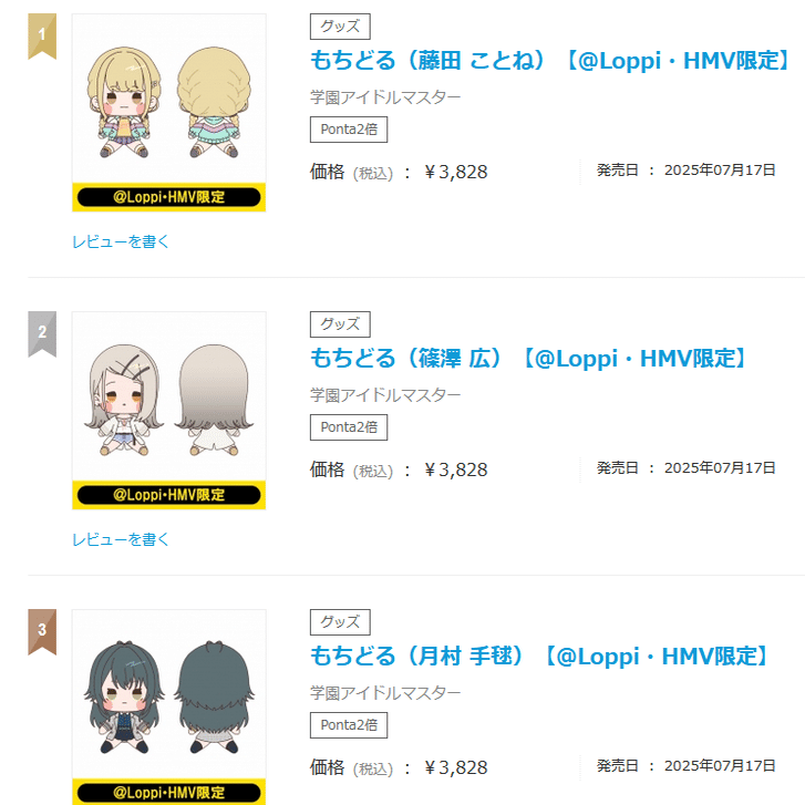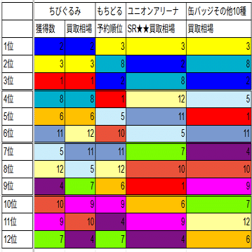 まんまランキングになってるから分かりやすい。上位3人はいつものメンツ。下位もそうでちびぐるみ需要とほぼ変わらず。コメントすることがない。