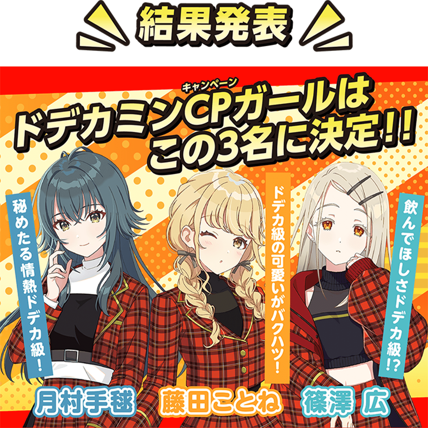上位3人はほぼ固定。ドデカミンキャンペーンでもこの3人が選ばれてるし、今回集計対象にしてないけどフィギュアとかの立体化もこの3人が多い。