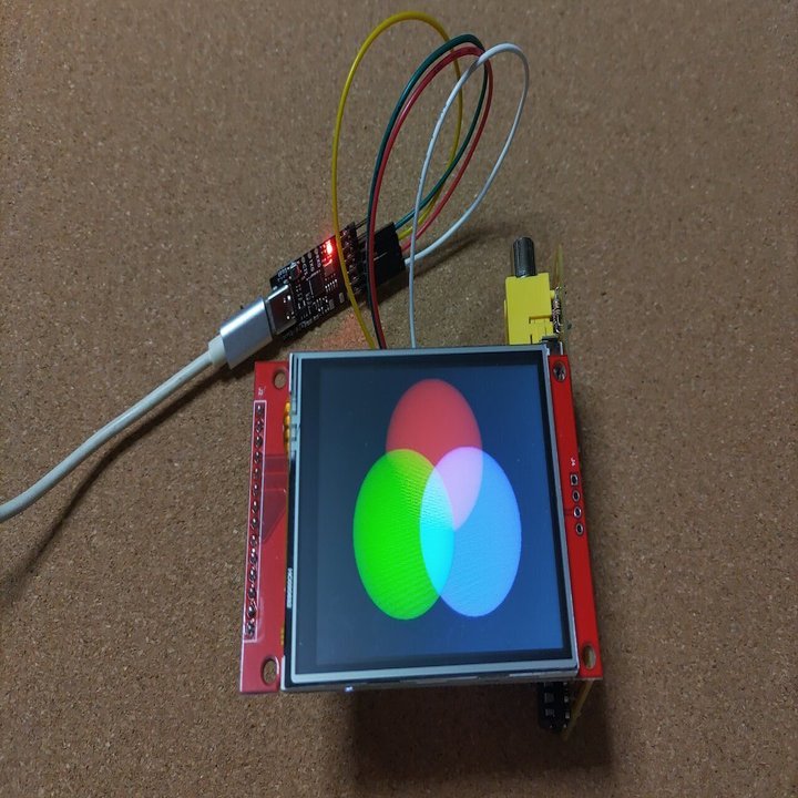 ORANGE pico で、丸3個からなるよくありそうな三原色の図をLCDに出力する。
