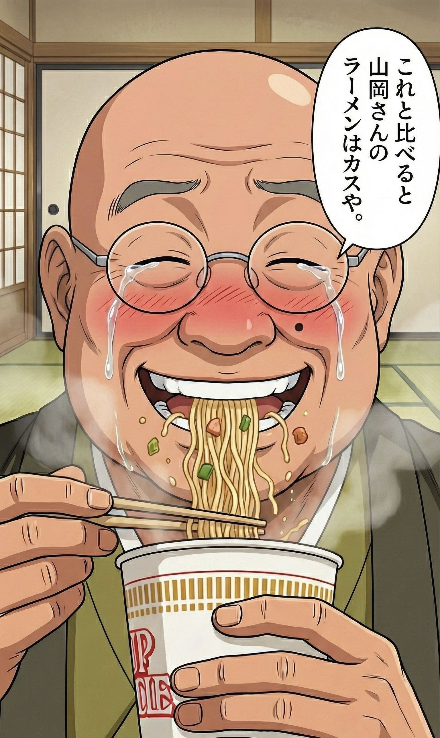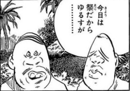 無人島のログハウスで一人カップラーメンを食べるボーボボのところ天の助をお願いします |