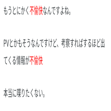 ところで、人読みは曲への印象にボカロPの好き嫌いが入り込むことになります。これが良い方向に働くことも、そうでないこともありますが、「薄っぺらい」を無効化しうるのは大きな利点です。