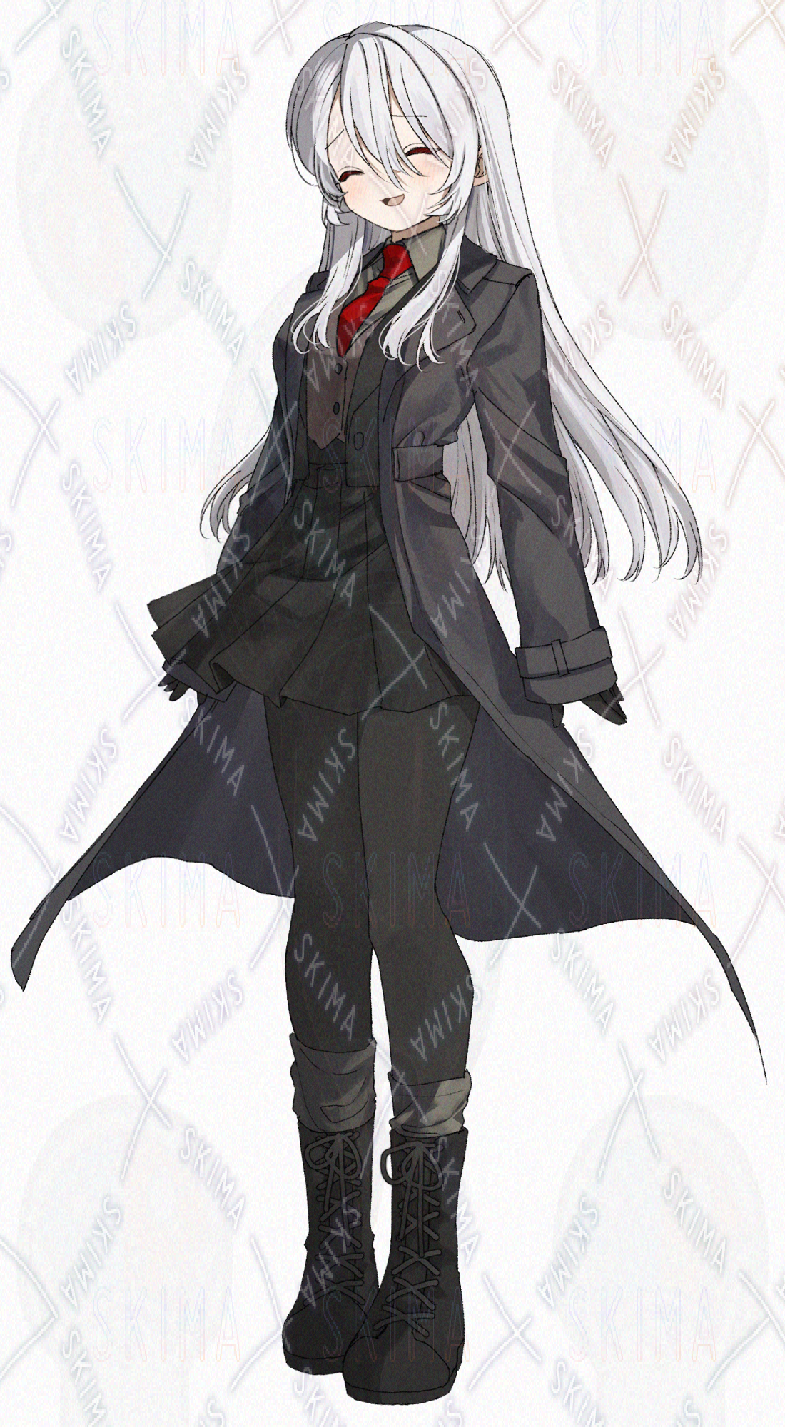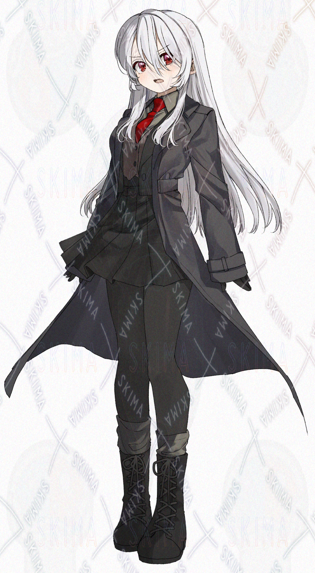 黒いコート、白髪ロングヘア、組織に所属してそうな雰囲気の女の子・女性です。キャラ設定はご自由に。