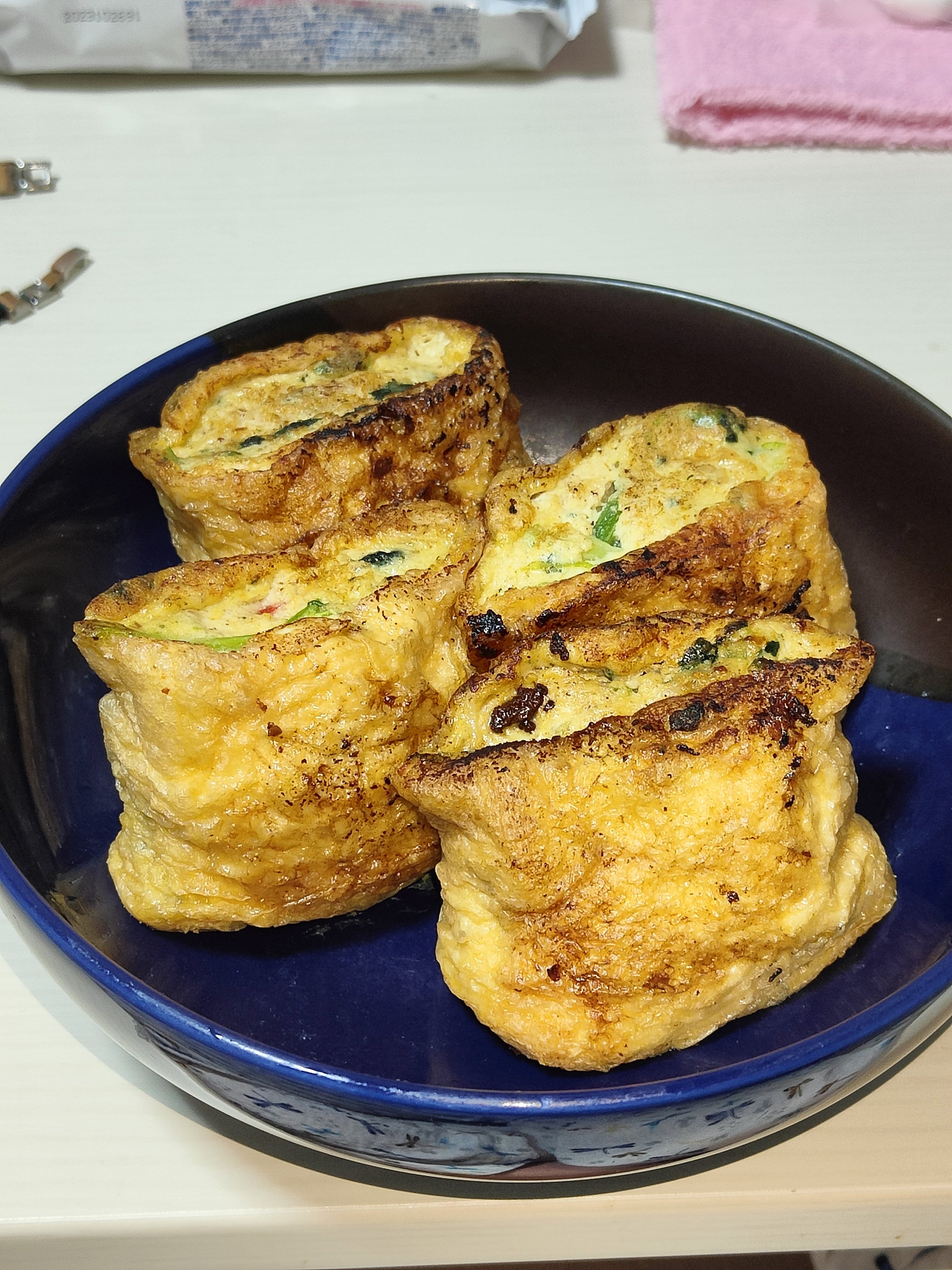 おあげに色々詰め込んで焼いてみた \(* ॑꒳ ॑*\ )アゲアゲ⤴︎⤴︎ #ぱるごはん