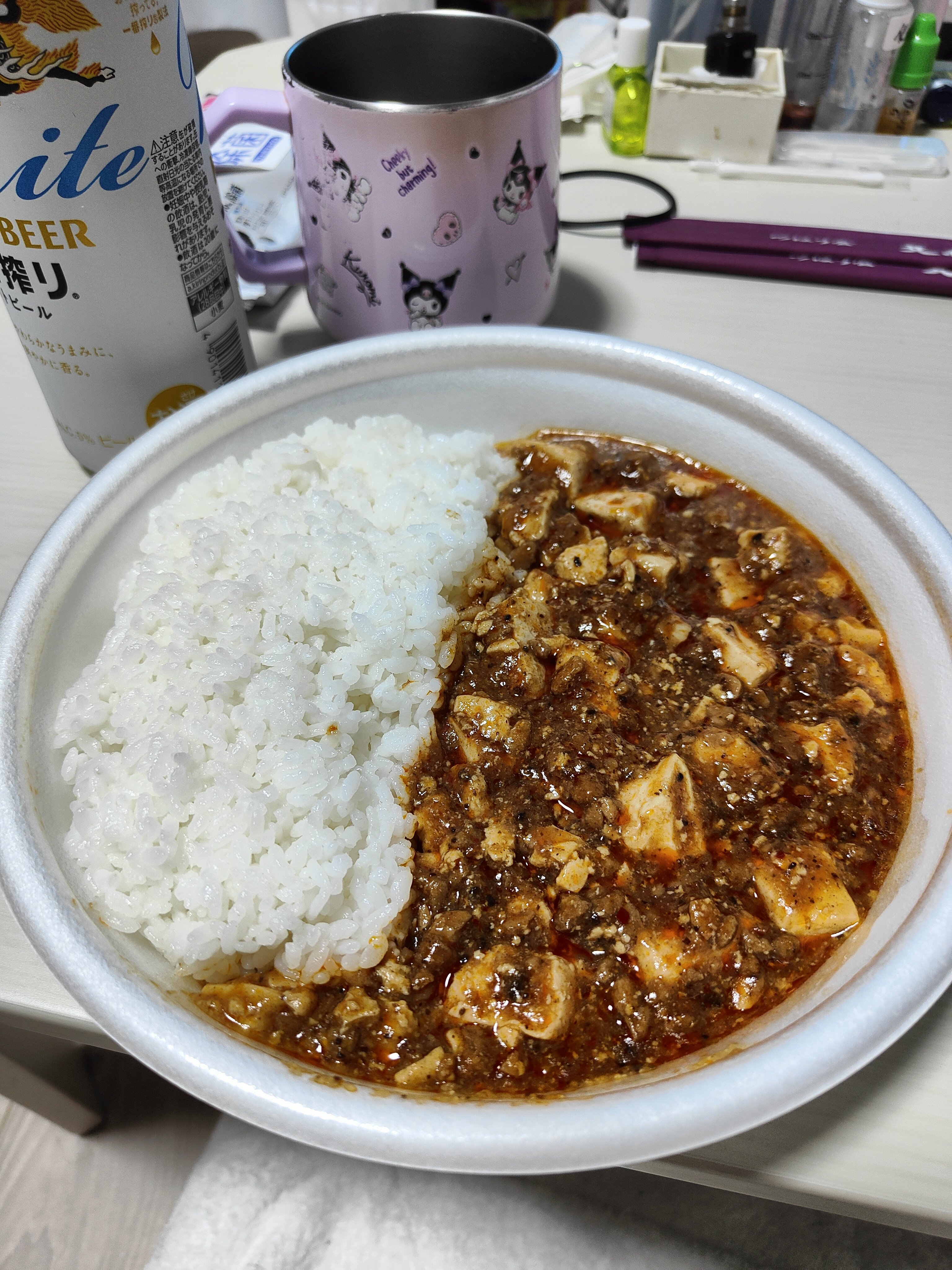 ファミマの40%増量、麻婆豆腐ごはん でっか!😄 そして味よし❣️米ももっちりしてて👍🌟