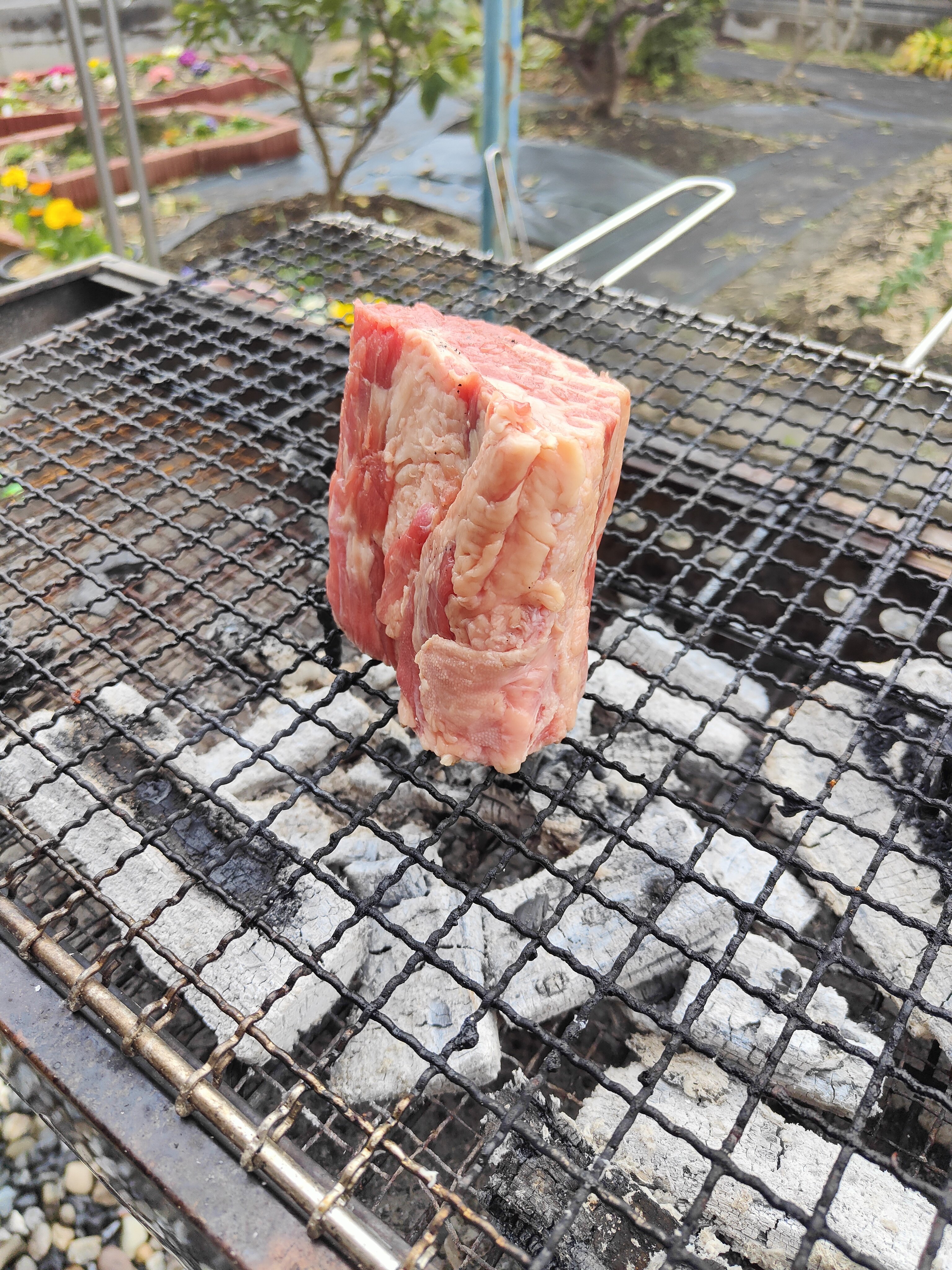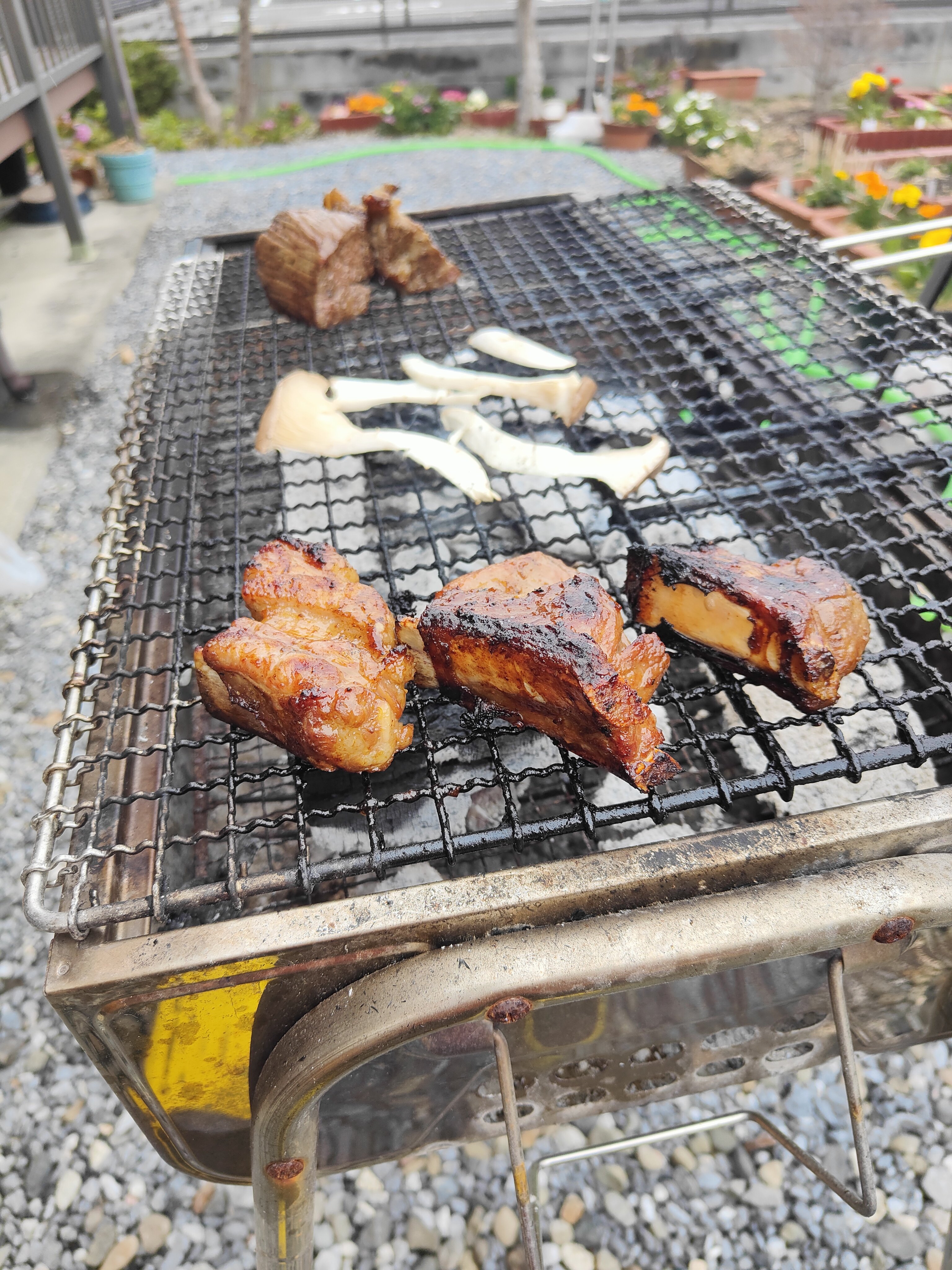 実家恒例、庭BBQ🍖🔥🍴 肉塊とスペアリブ焼いてます☺️