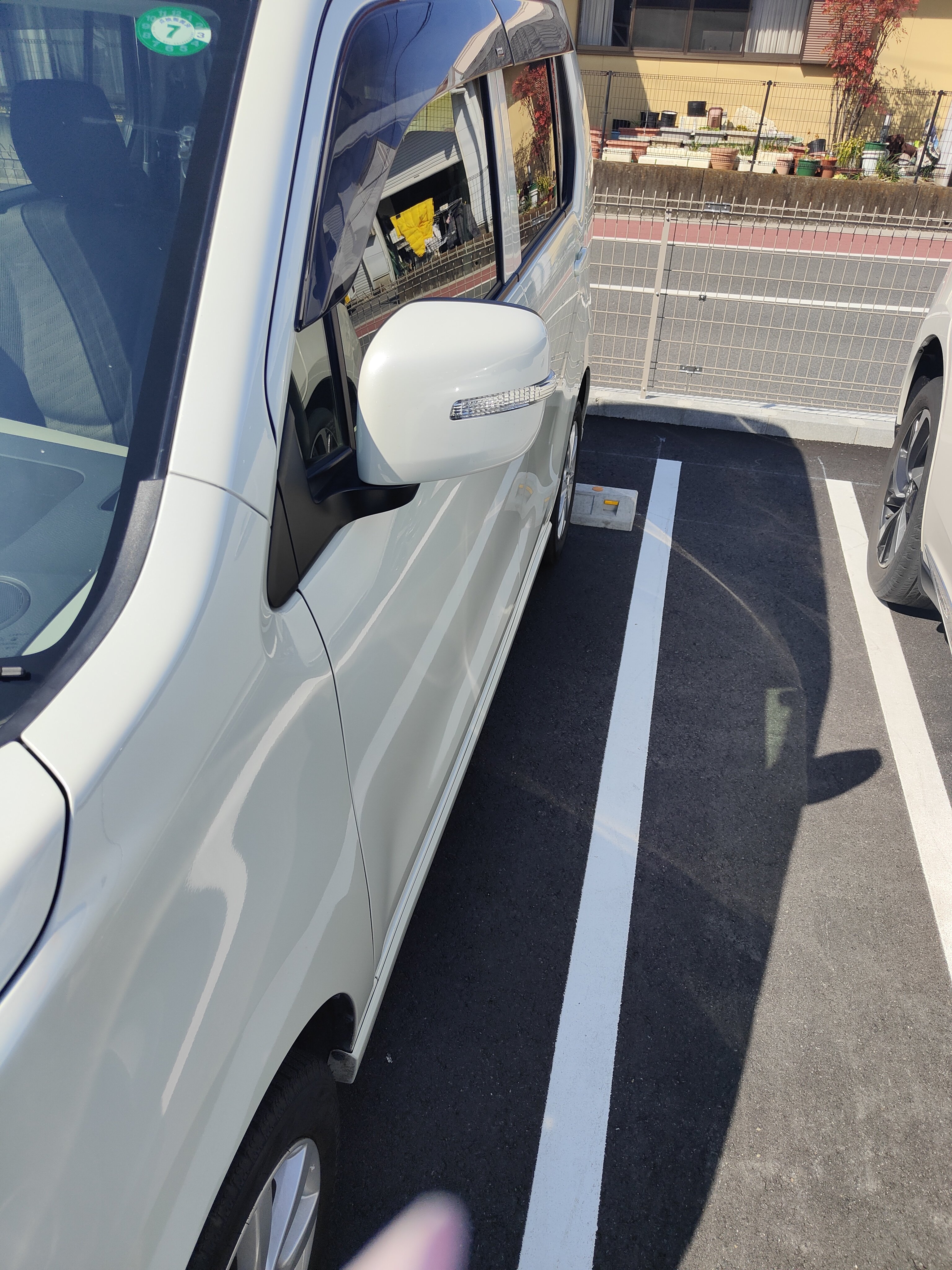 田舎はミラーを畳まない〜☺️ 駐車場広いのぉ🐄🌼