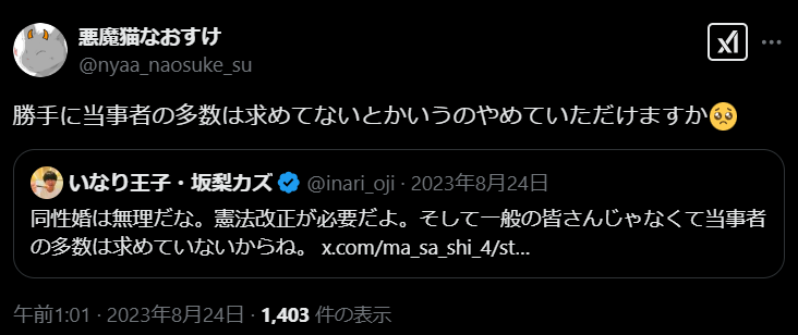それとも、「なおすけはバイ差別をしたのだから、これくらい言われて当然だ」という考えでしょうか。