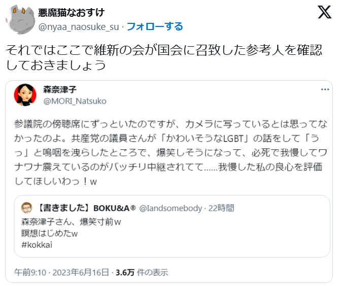 さて、なおすけさんに対する「バイ差別」捏造事件に、この人が参戦してしまいました。