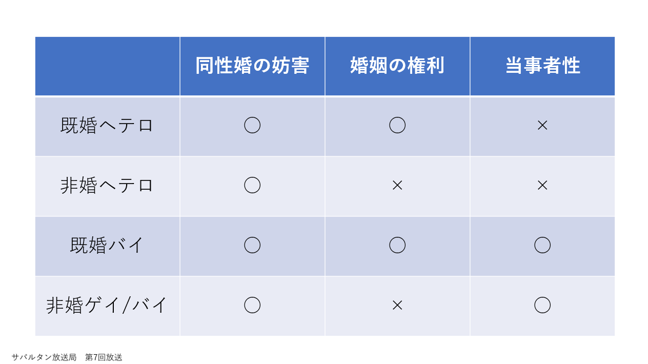 また、①に関しては、「既婚バイ」だけが、婚姻の権利を享受しながら、当事者性を前面に打ち出して、同性婚の実現を妨害することができてしまいます。