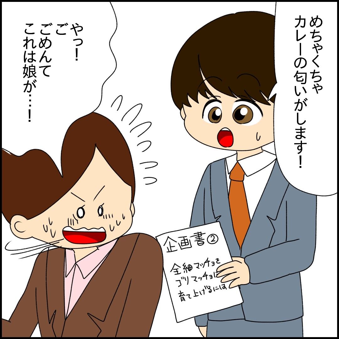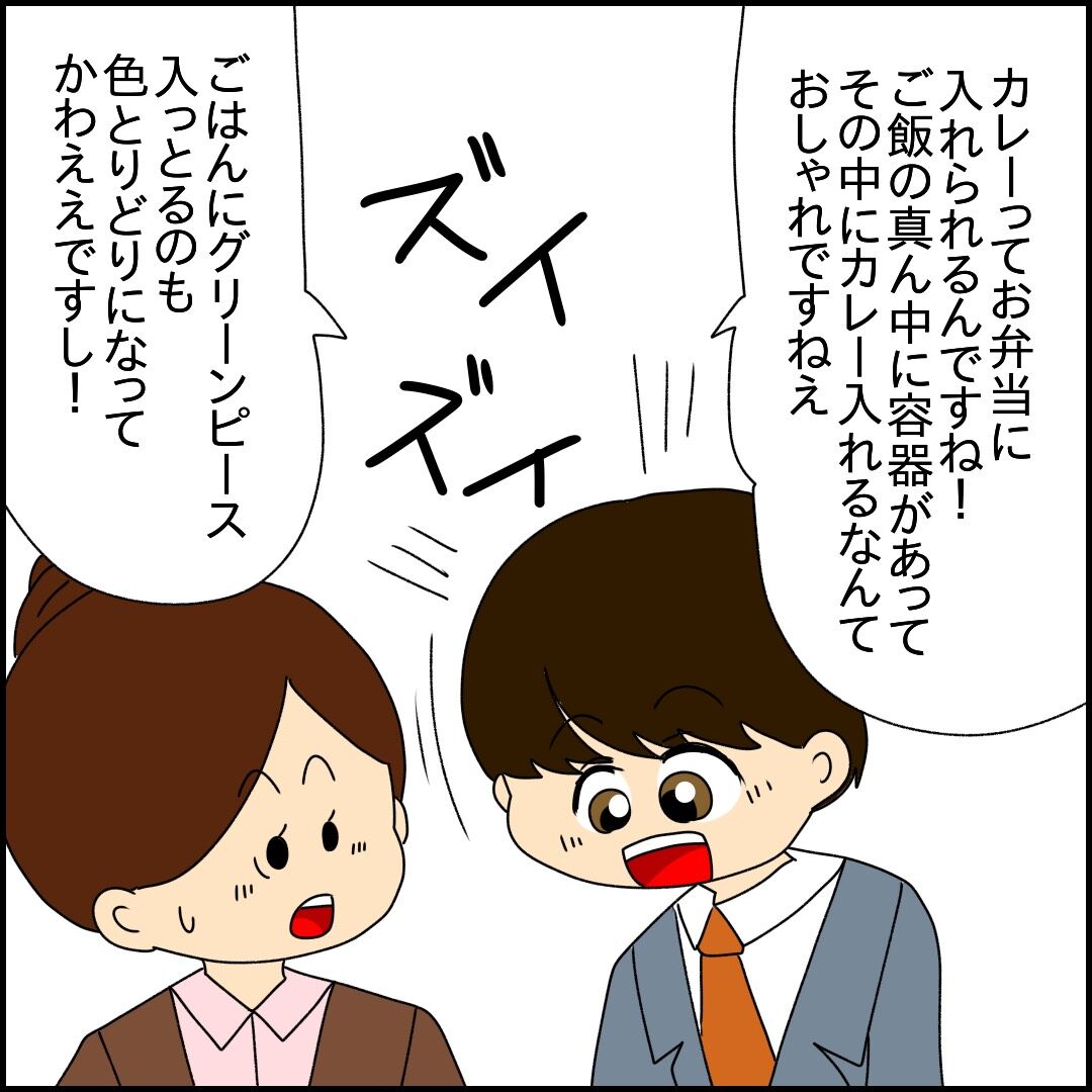 カレー弁当の匂いを気にする桃子さん。そんな時にかぎって話しかけられてドキリとしますが…