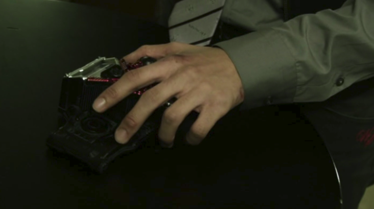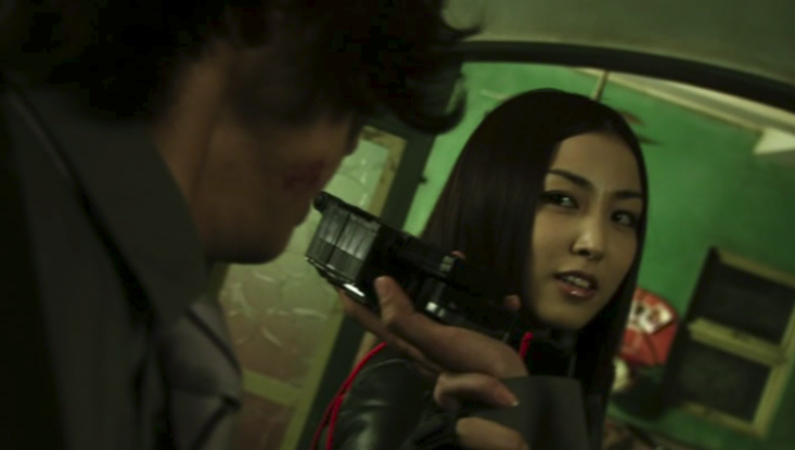 机を蹴っ飛ばし、翔太郎の動線を限定するレイカ。