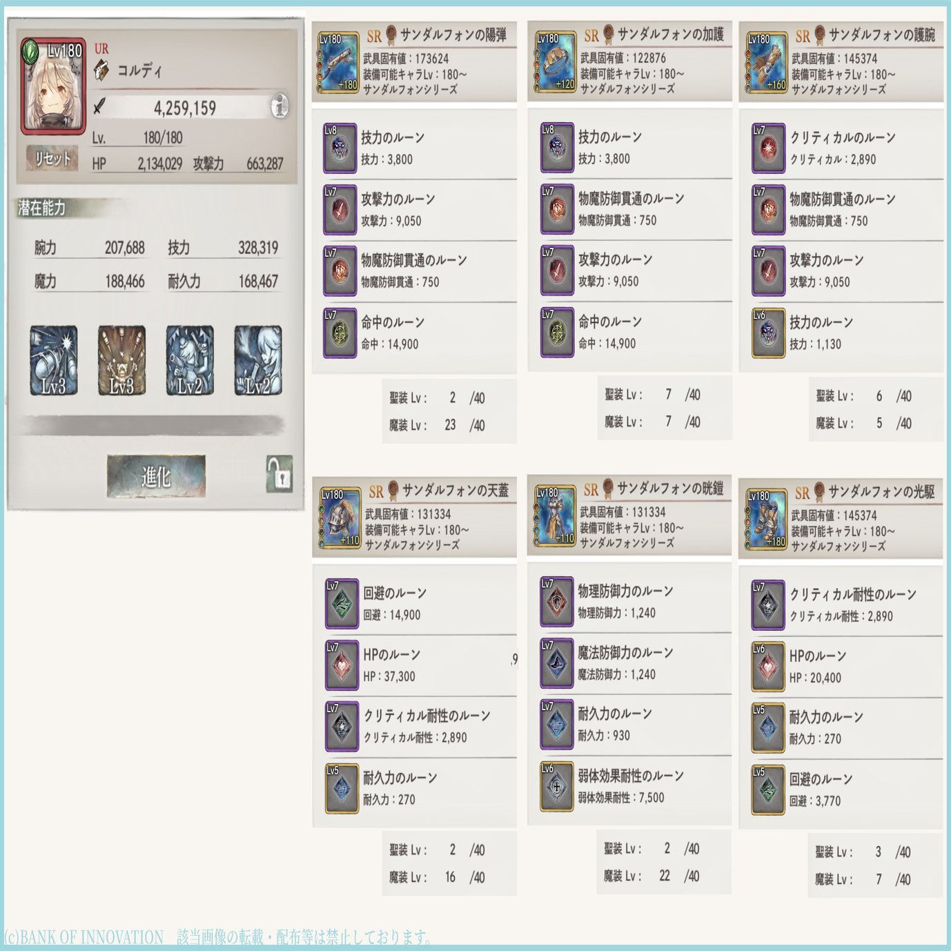 更に慣れた頃、コルディ1強にした場合。
