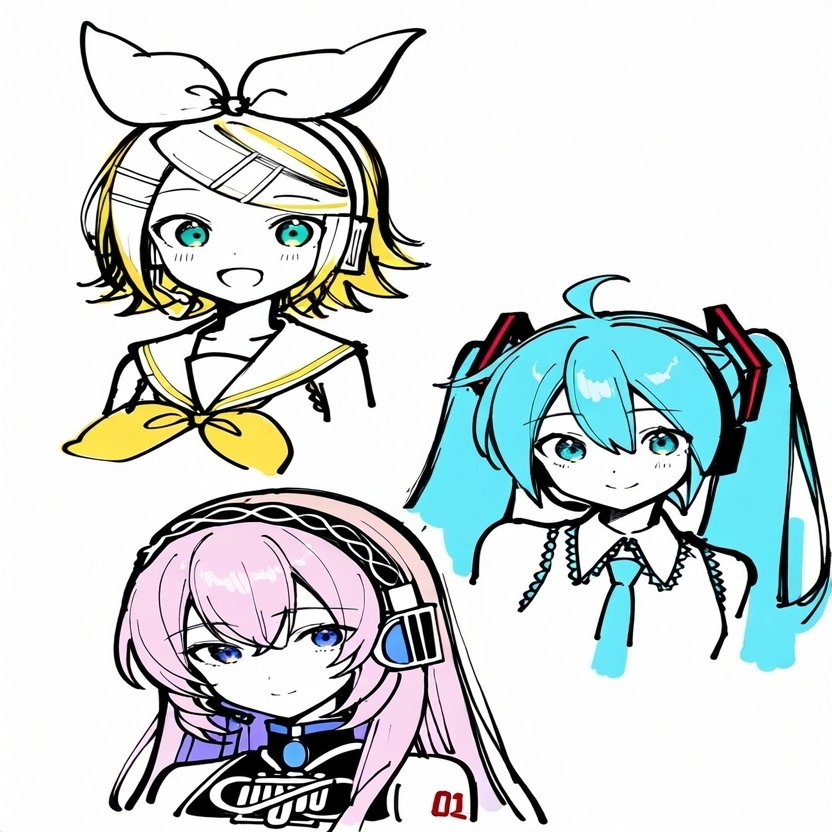 本記事に投稿されている作品はピアプロ・キャラクター・ライセンスに基づいてクリプトン・フューチャー・メディア株式会社のキャラクター「初音ミク」「鏡音リン」「鏡音レン」「巡音ルカ」を描いたものです。