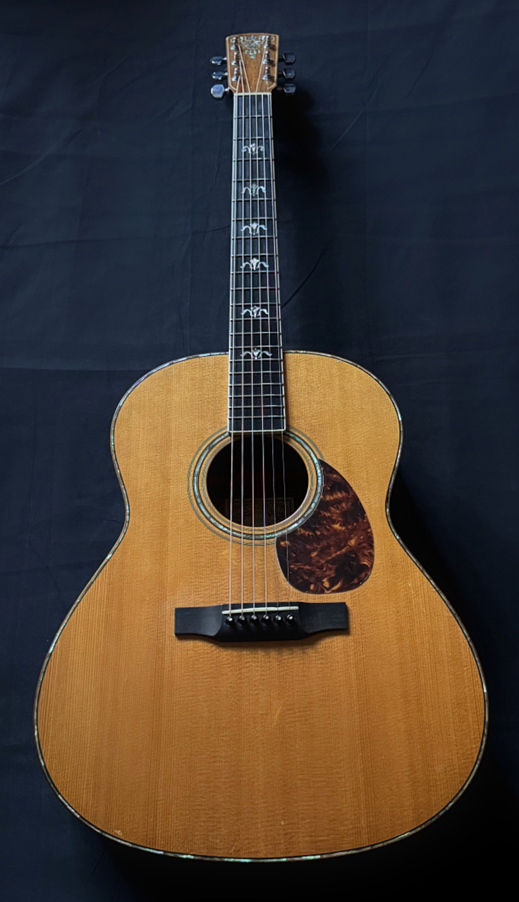 ラリビー(Larrivee)ギターズは、カナダ出身のギタービルダーのジャン・ラリビー(Jean Larrivée)氏により1967年にカナダのトロントで設立されました。設立当初は、クラシックギターギターの製作を行っておりましたが1971年よりスティール弦を使用するアコースティックギターの製作を開始、1977年にブリティッシュコロンビア州ビクトリアに工場を移転、後に数回の移転を経て、現在はアメリカとカナダで製作が行われております。正式社名はJean Larrivée Guitars USA Inc.。ジャン・ラリビー氏は、エドガー・モエンク・シニアのもとでギター製作を学び、独自の「シンメトリカル・パラボリックXブレーシング」を開発、音色と耐久性の向上を実現しております。もともとサウンドバランスが最も重要とされるクラッシックギターの製作ノウハウが、アコースティックギターの製作に反映され、一般的な伴奏用のアンバランスな従来のアメリカン・アコースティックギターとは異なる、バランシング・音色・世界観を見事に実現いたしました!!日本においてラリビーギターが、注目されたのは、1977年9月15日、CBS・ソニーからリリースされた故中川イサト氏による日本初のインストウルメンタルアルバム(LP)”1310”で中川氏が使用し、レコーディングを行い”サウンドバランスがよく、フィンガーピックング向きでね、、”というコメントが瞬く間に日本中に広まり、Martin、Gibsonなどのギターメーカーにばかり目を向けていた多くの多くのギタープレーヤー、ギタフリークに衝撃を与えたのでありました!!