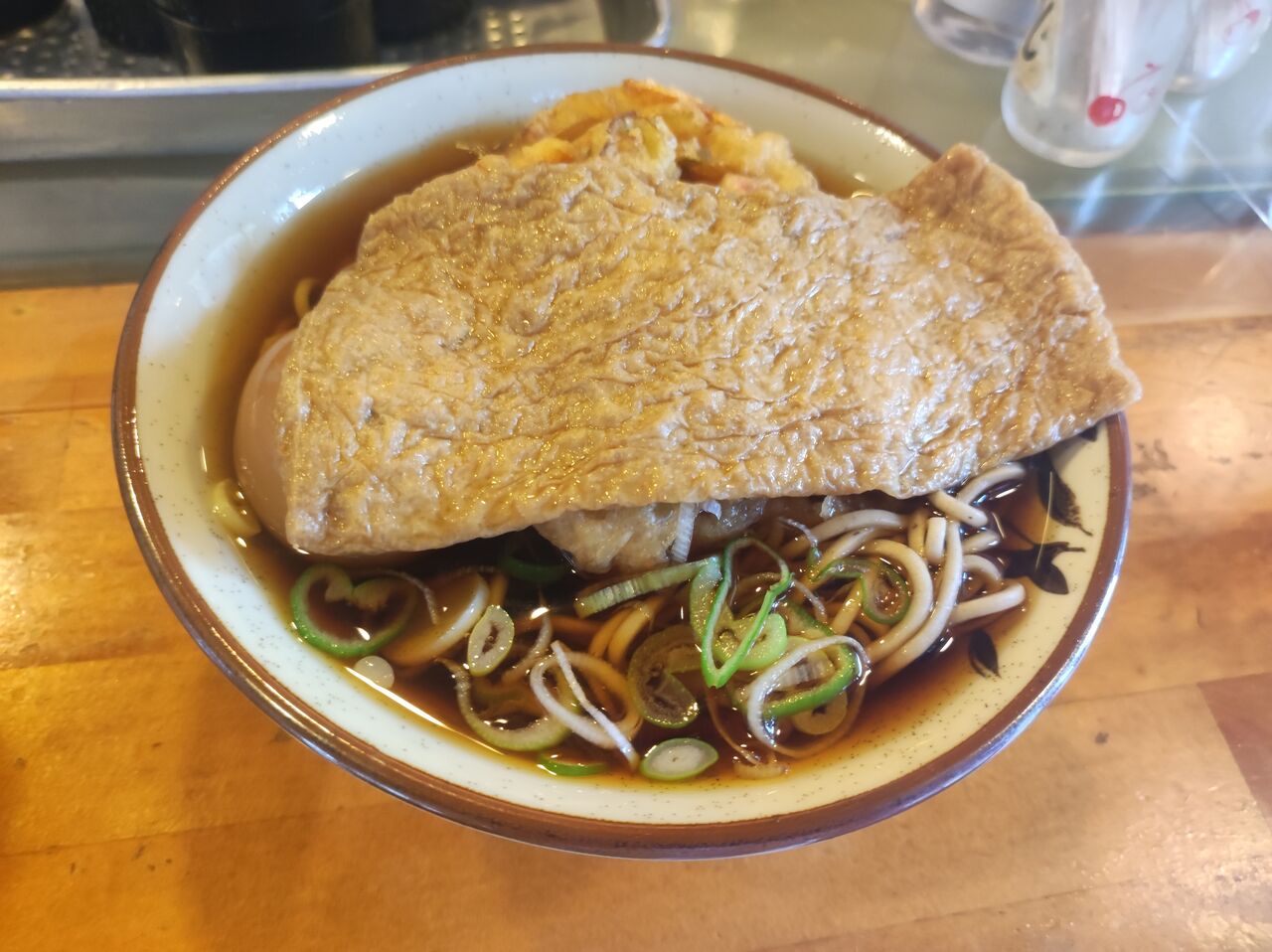 若女将が何にしますか?という顔で自分の方に顔を向ける。「天ぷらそば(470円)に味玉子(70円)、それからきつね(100円)をのせてください。」と注文し、カウンターに用意してきた640円ちょうどを置く。最後だから、好きなものをのせて食べるのだ。手慣れた動きで、おそばを作ってくれる。「どうぞ。」「いただきます。」
