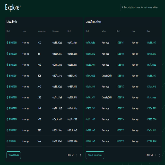 また、DEXらしくオンチェーンにすべての取引情報が刻まれており、誰でもそれを参照できる、というのも大きな魅力です。というかexplorerすら存在しないPerpDEXは逆になんなん…