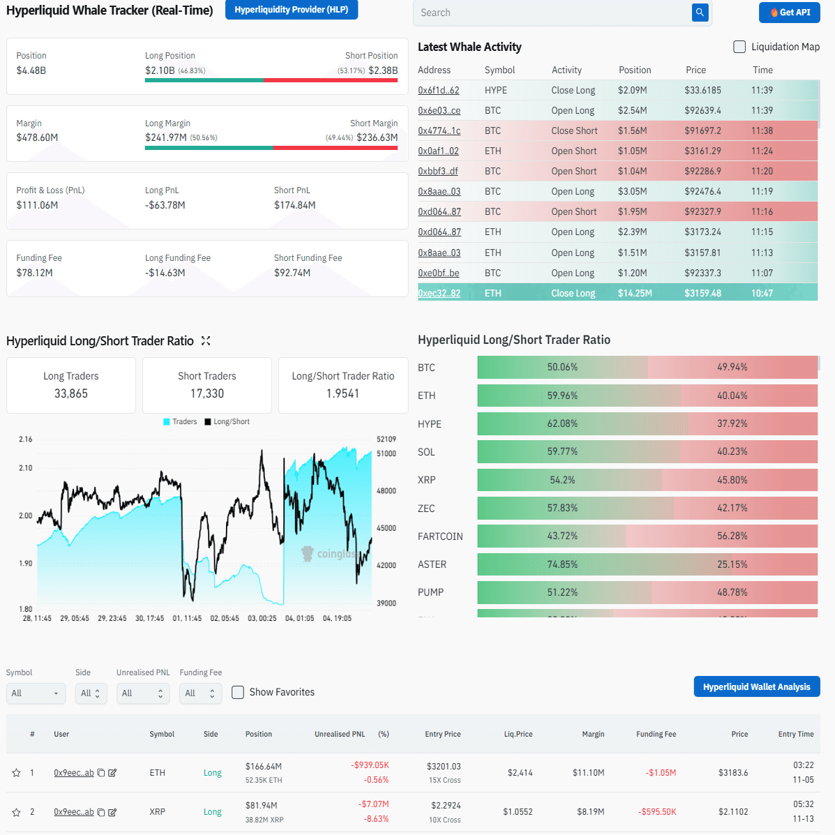 ・大口ポジション(1Mドル以上)のアドレスしか表示されない