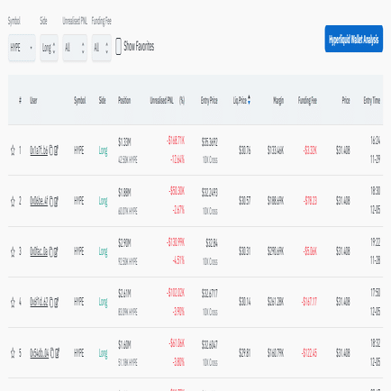 Hyperliquid上でポジションを保有している大口の内容を見ることができます。