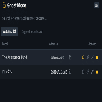 Ghost Modeではwatchlistも使えるので、アドレス管理もしやすいです。