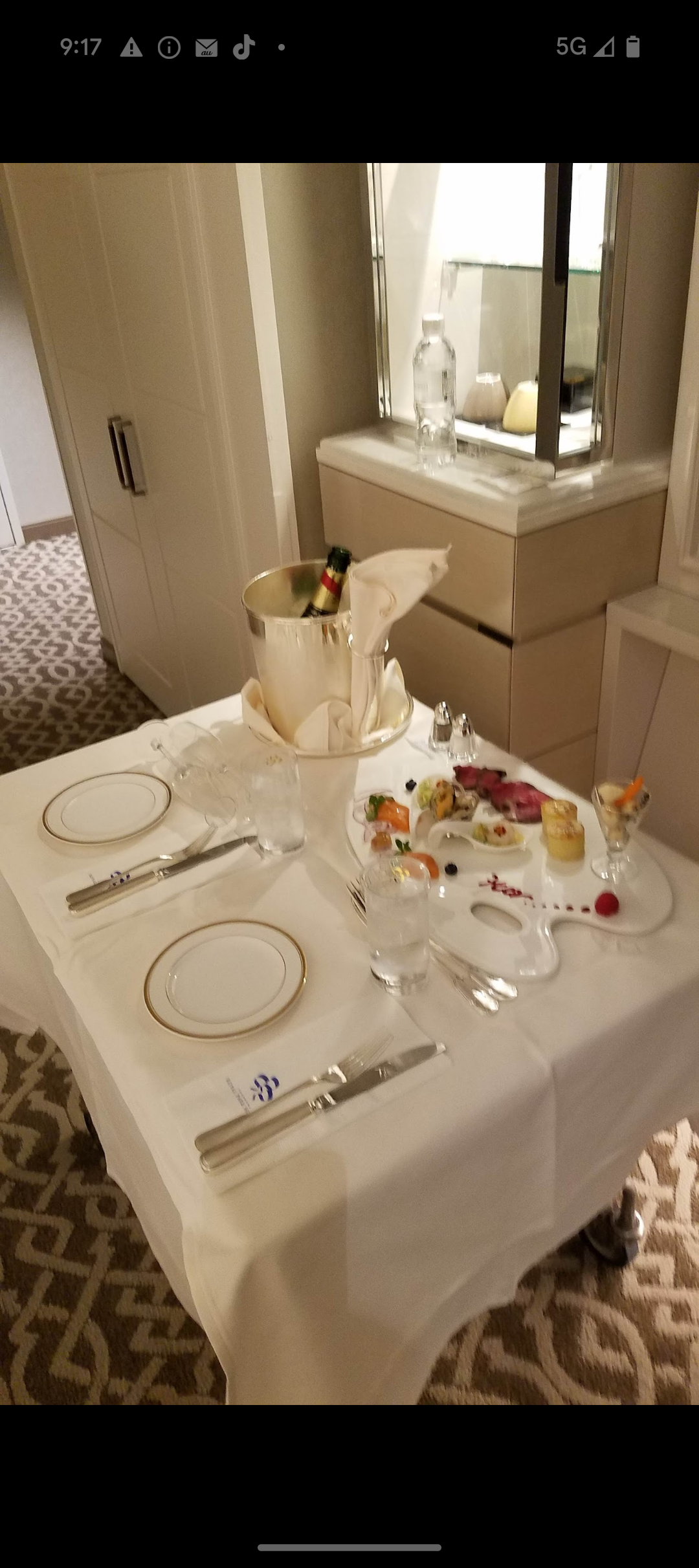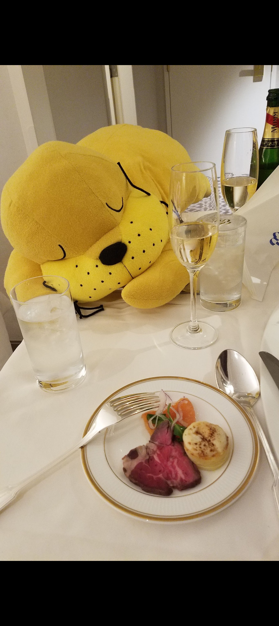 夜のルームサービスではぬいぐるみの分のお皿とグラス🍷を用意してくれたことにとても感動しました🥹