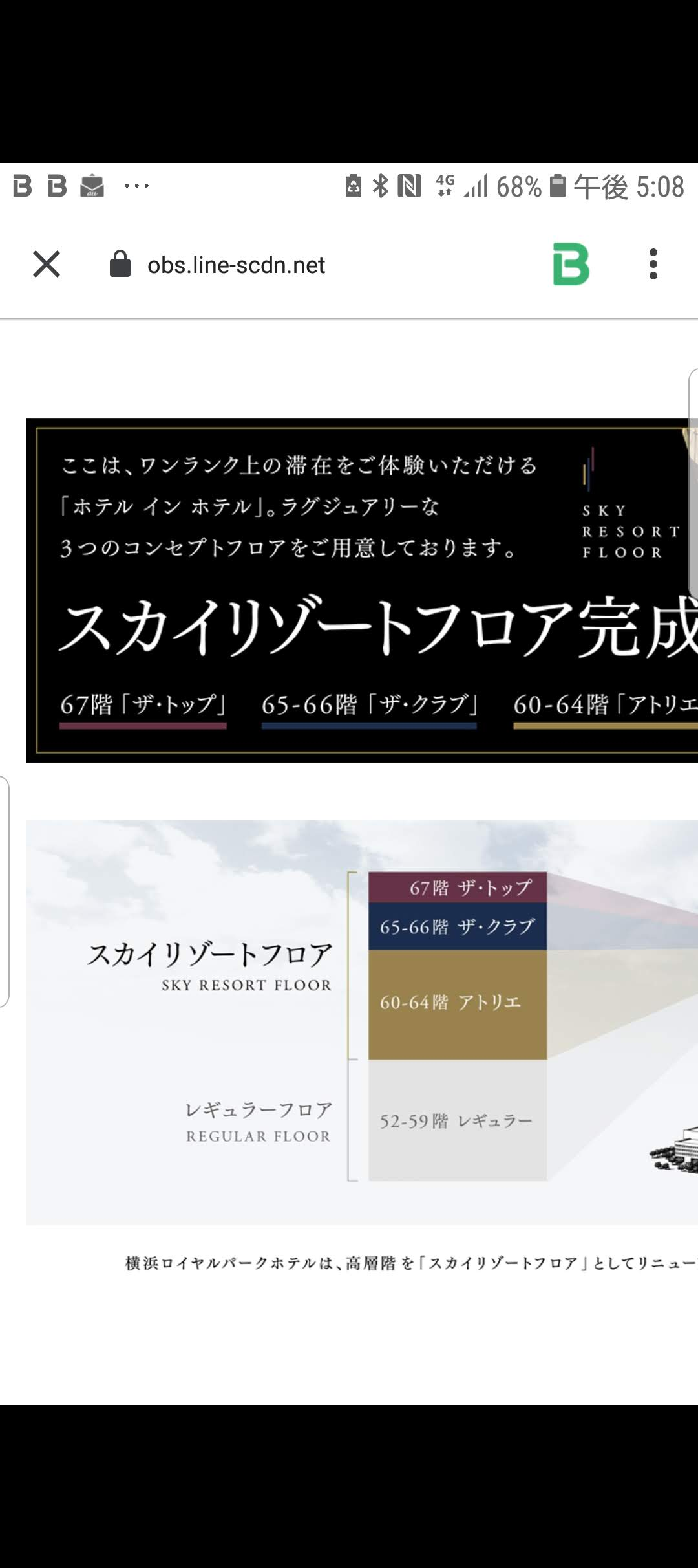 横浜ロイヤルパークホテルは大きく4フロアに分かれてます。
