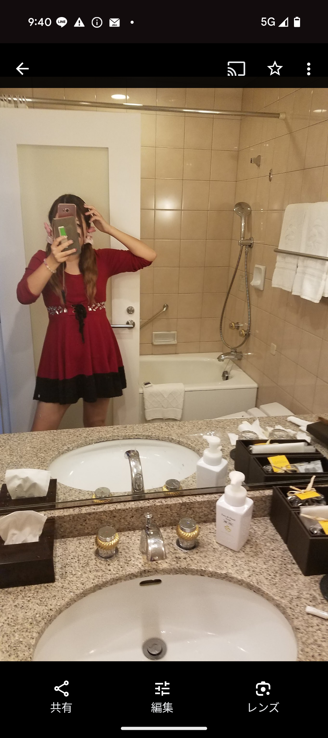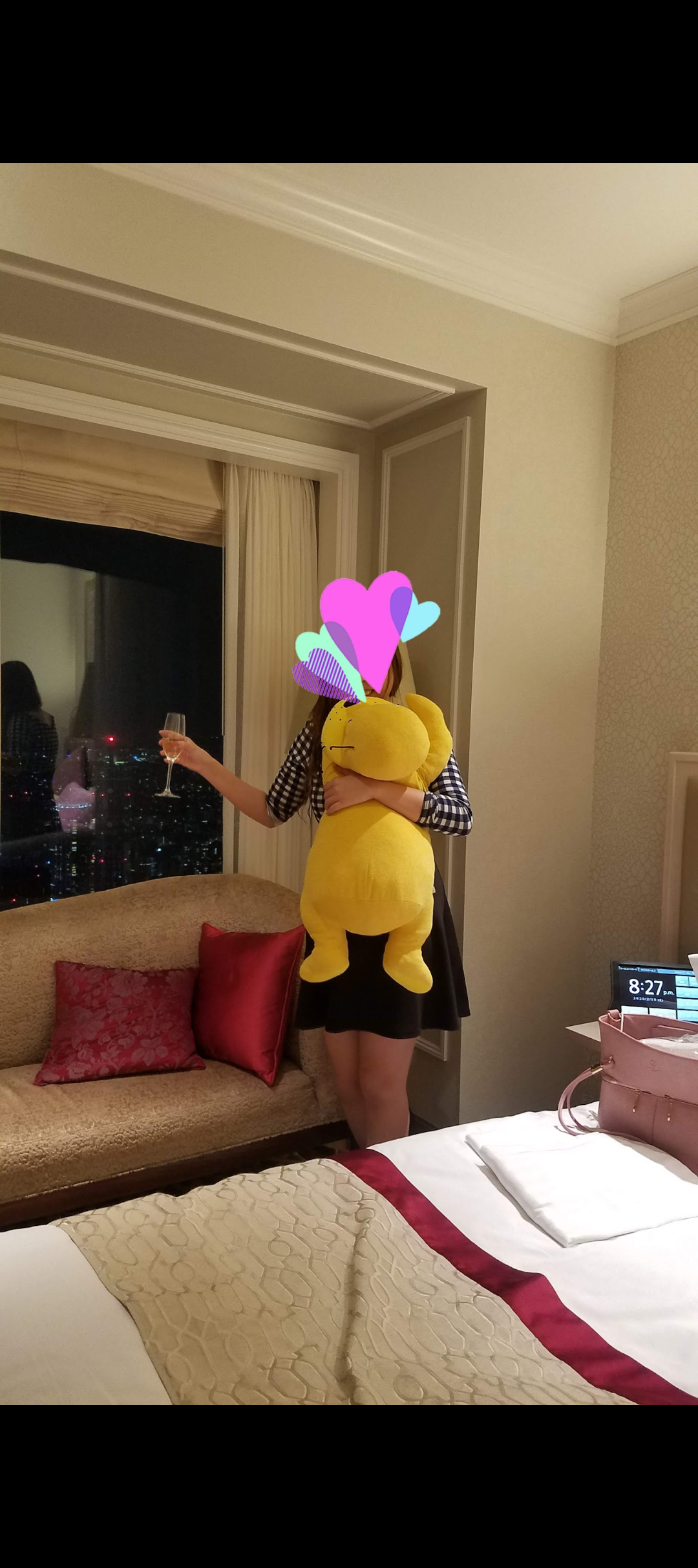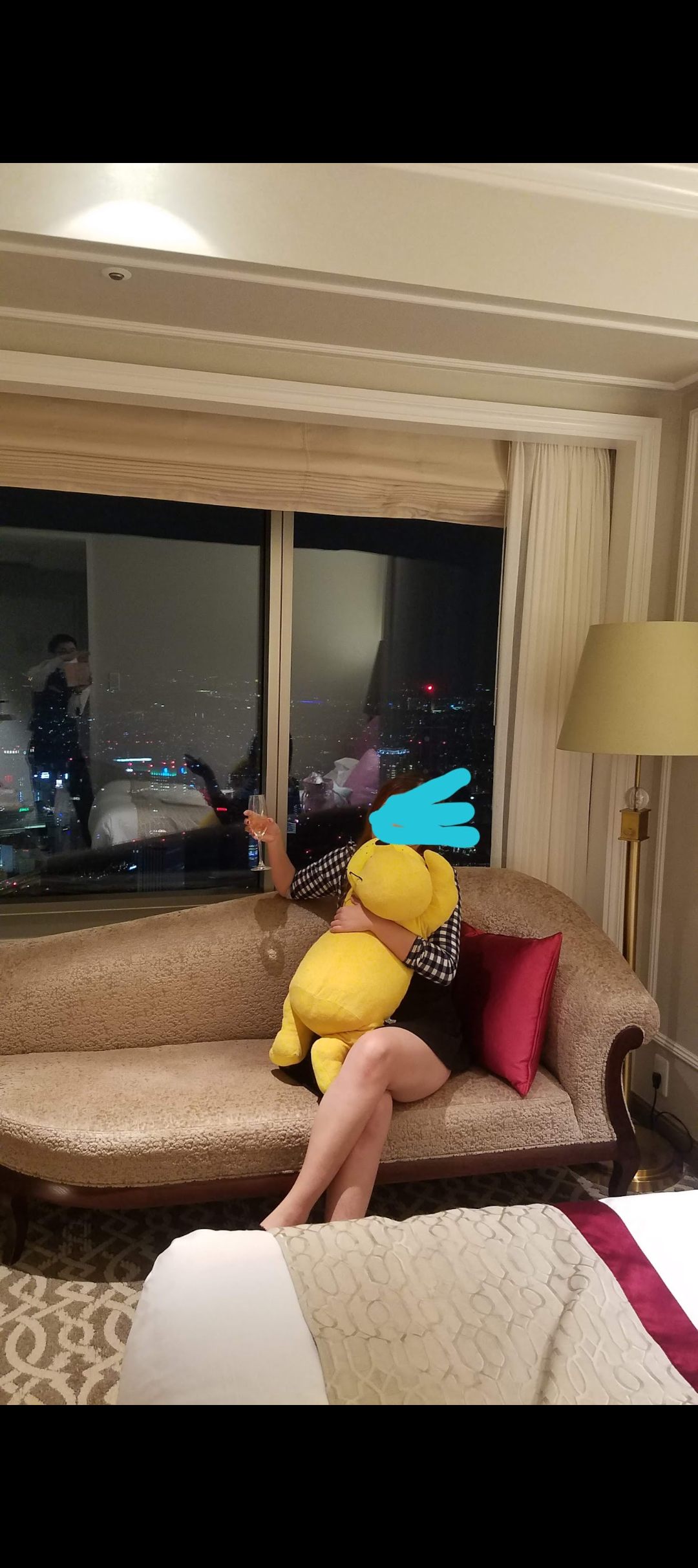 シャンパン🍾片手に足組んでホテルマンに写真撮影させてる私(笑)