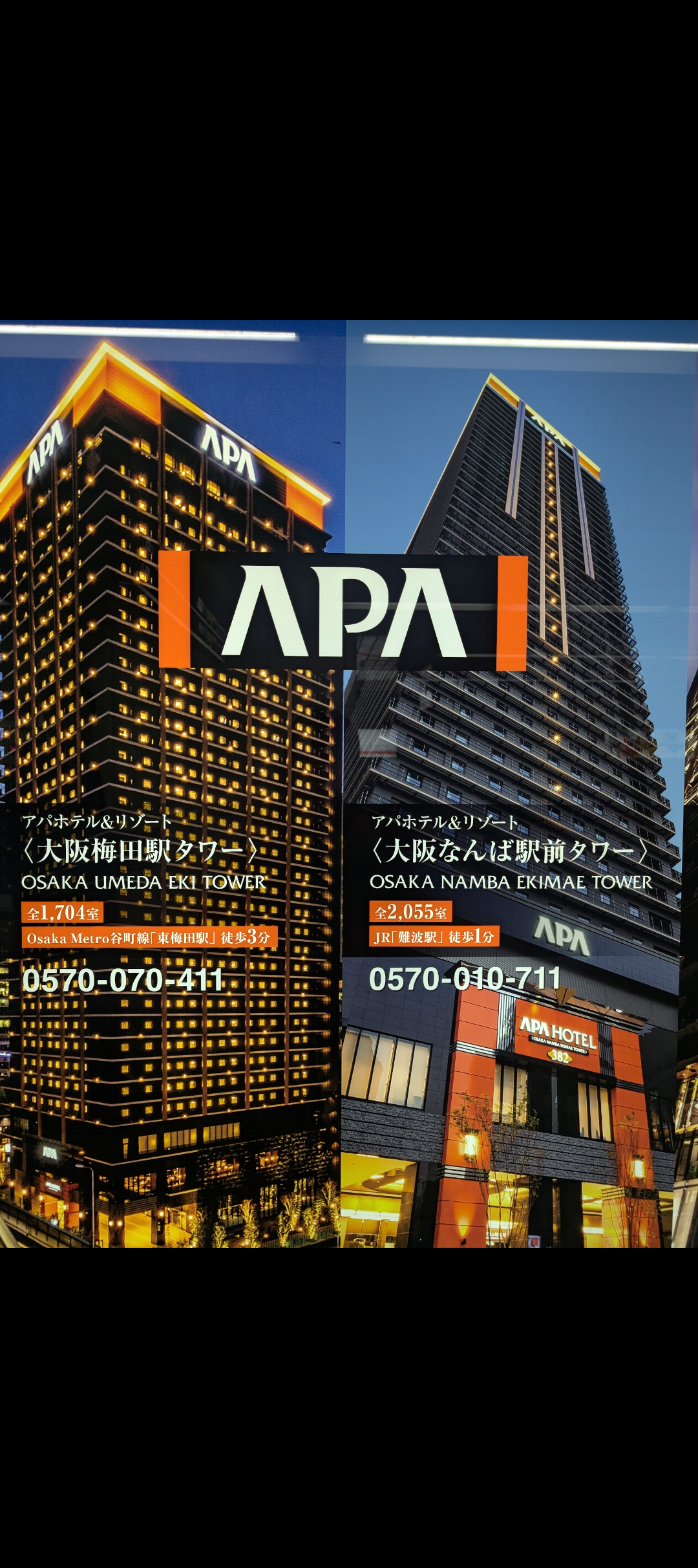 アパホテルは沢山ありますが大阪は梅田駅タワーとなんば駅前タワーが2トップですごく大きなホテルです😌