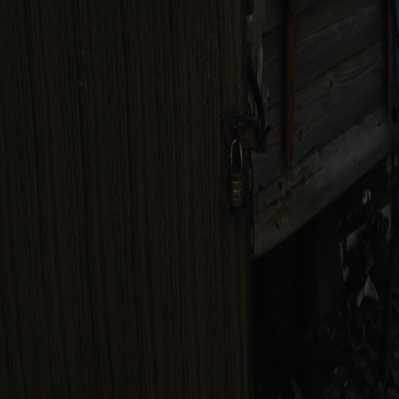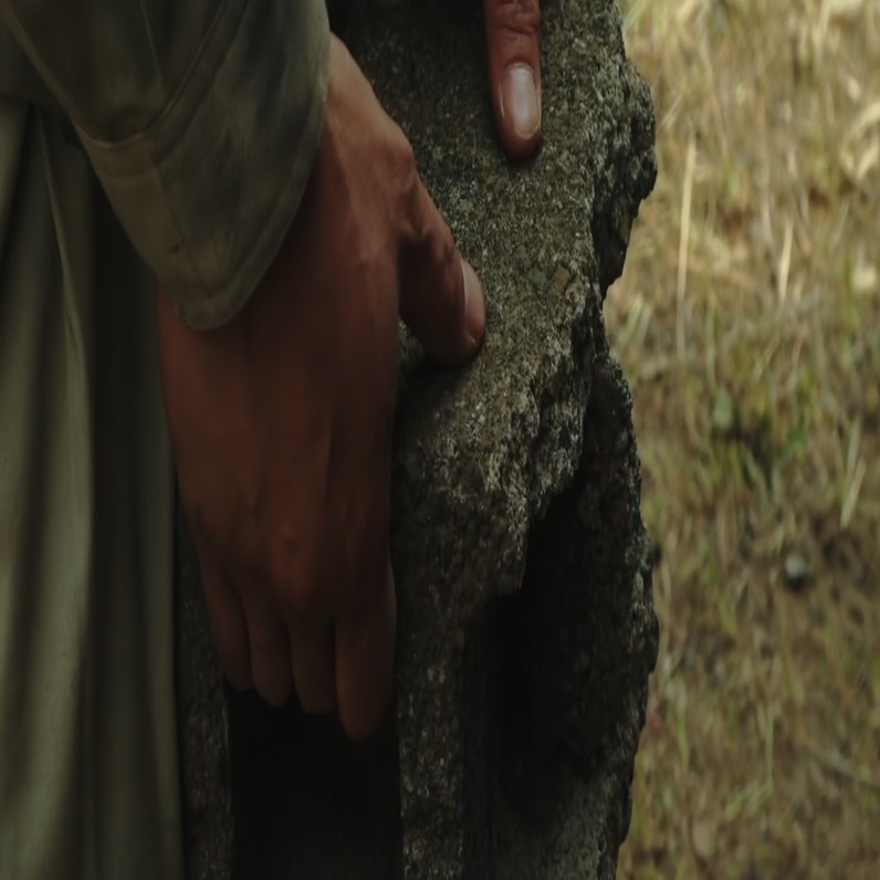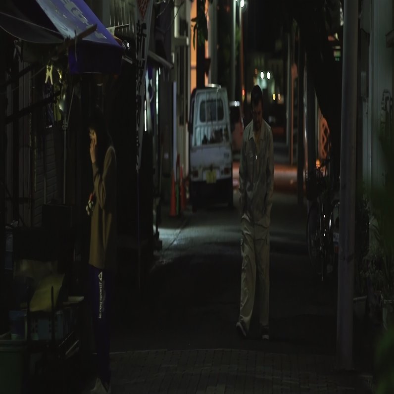 扉に付けられた壊れた鍵が映る。そしてドアを開けて男が出てくる。足を引きずっている、その足だけが映ってる。これは何か障害がある人なのかな。次に、ちょっと貧しいかんじの家が映っていく。これ、ワンカットです。ずっとその男の後ろをカメラが追っていく。最終的に男が振り返る。ヒゲの男が出てくる。「こいつか、」ってかんじでキャラクターが初めて見える。すごい、かっこいいですよね。ぐーっとついていって、最後、男が振り返る、かっこいい。振り返るって、ラストの岬の場面もそうですが、決定的な瞬間です。やっぱり、顔、顔面の力ってすごいです。