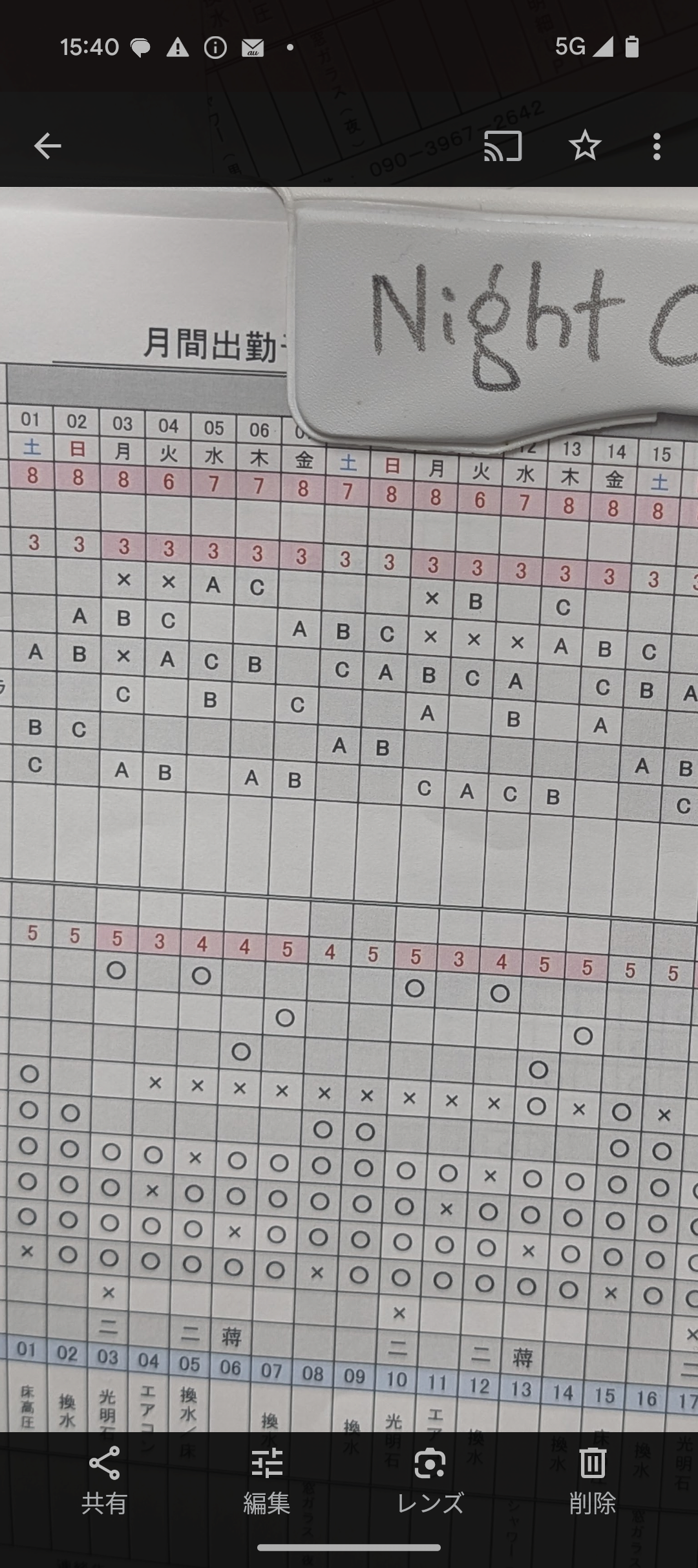 シフト表。