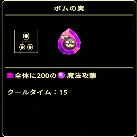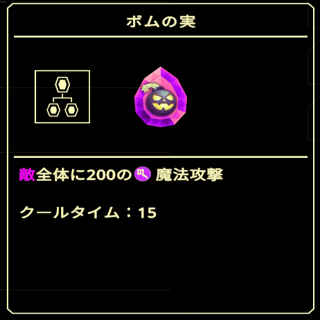 あとはボムの実も有効ですが、4日目や7日目と違ってあくまで火力の足しにしかならないので、パーティの火力面を強化してから挑みましょう。