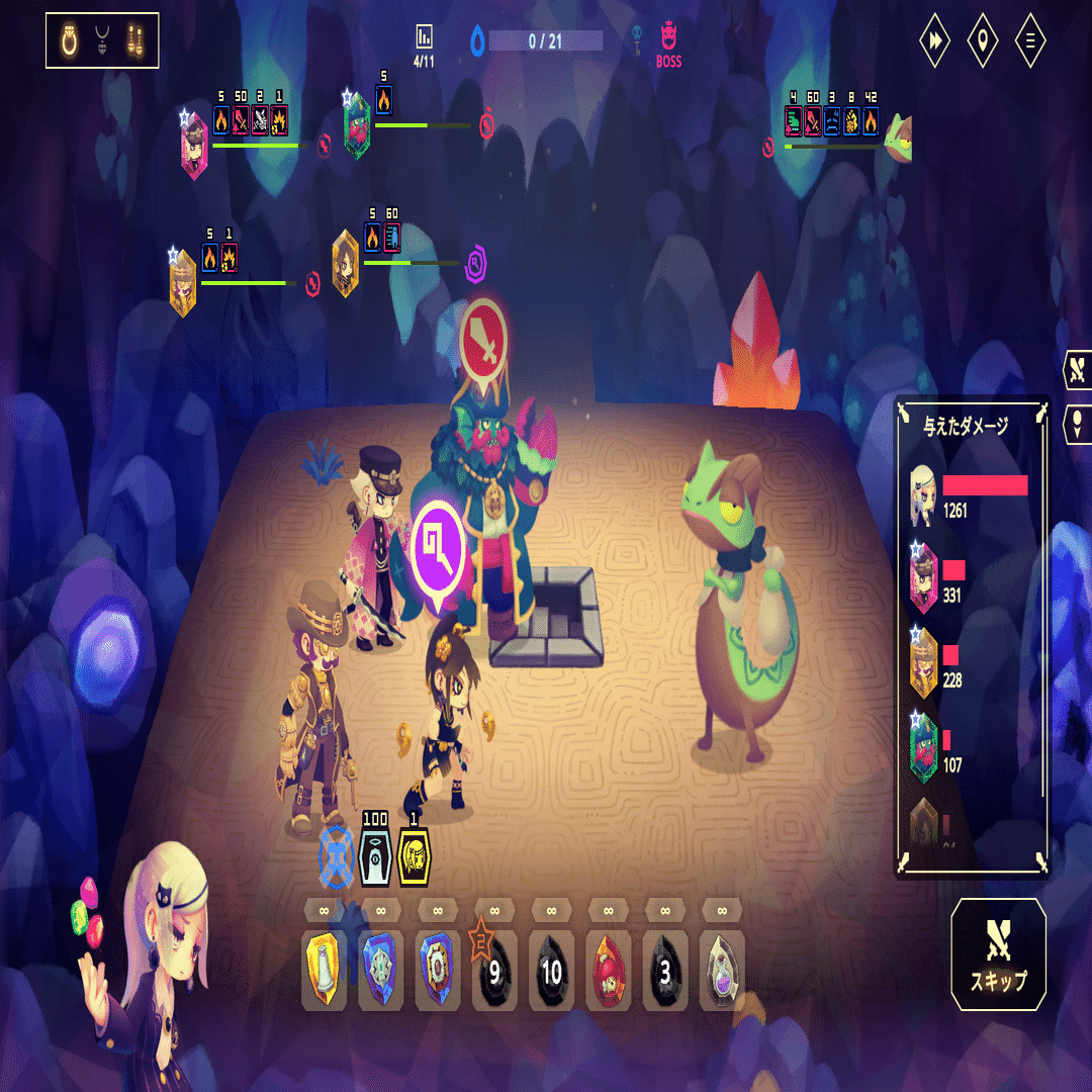 メインのアタッカーはマップの最後の流浪の商人のシンボルから選ぶ