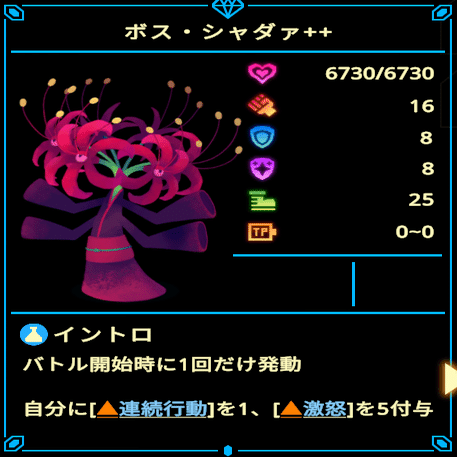 主に、激怒などで強くなっていくタイプのボスに対して使用します。