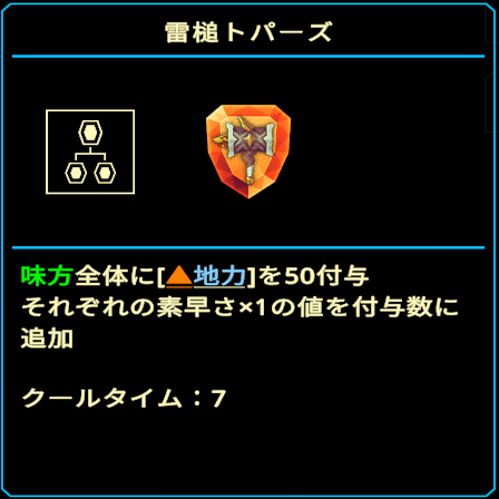 ユニットがスキルを発動した次のターン、雷槌トパーズで強化することで、とんでもないダメージが出ます。
